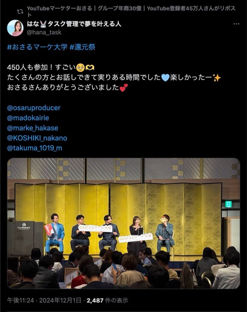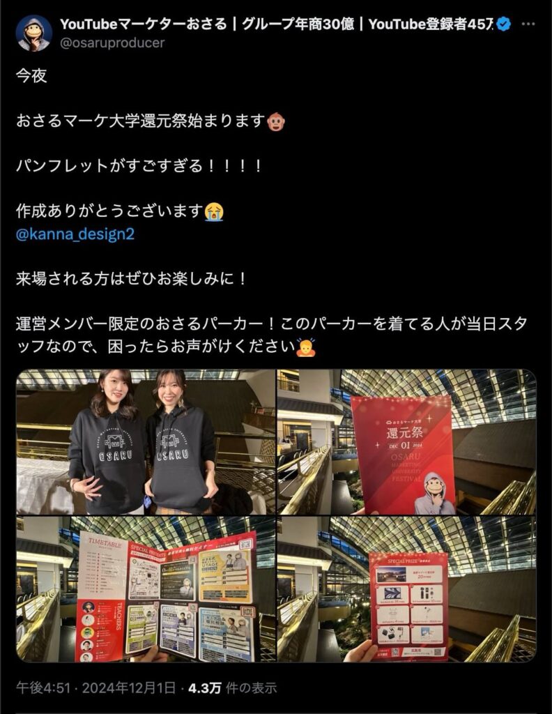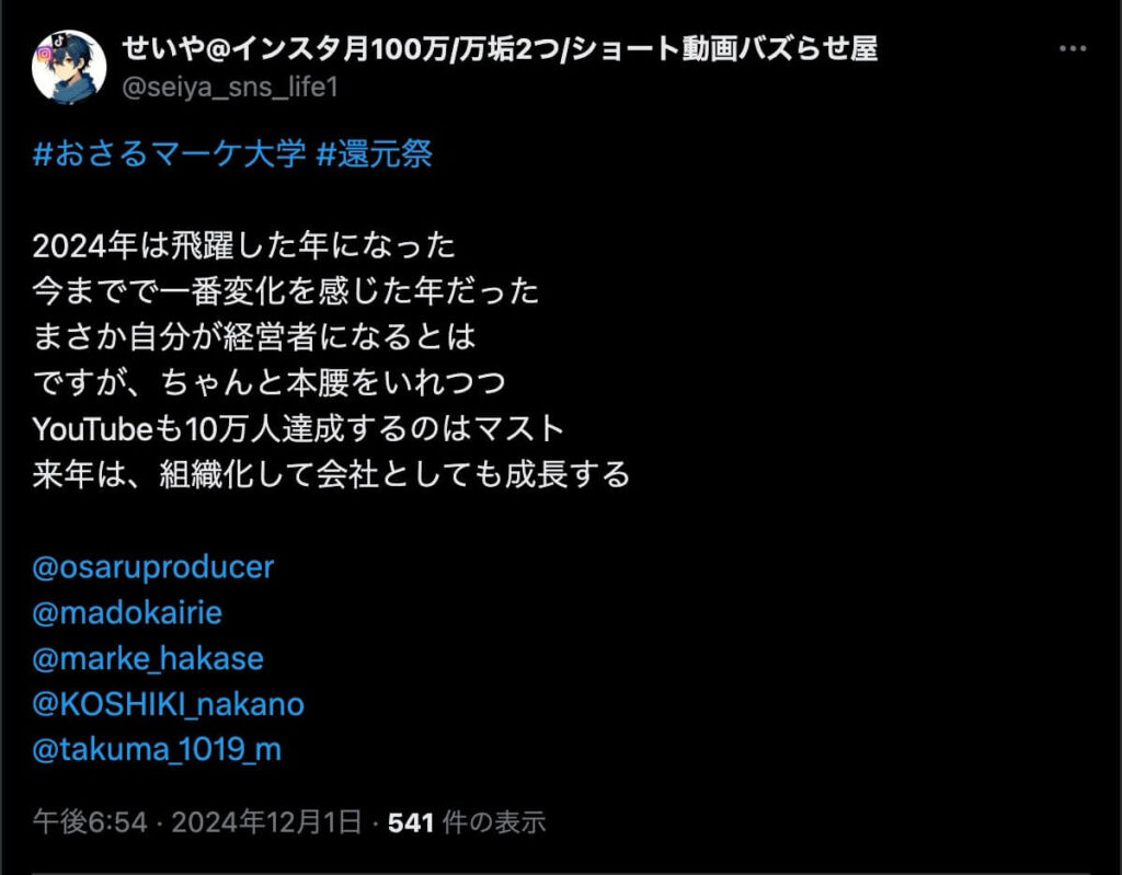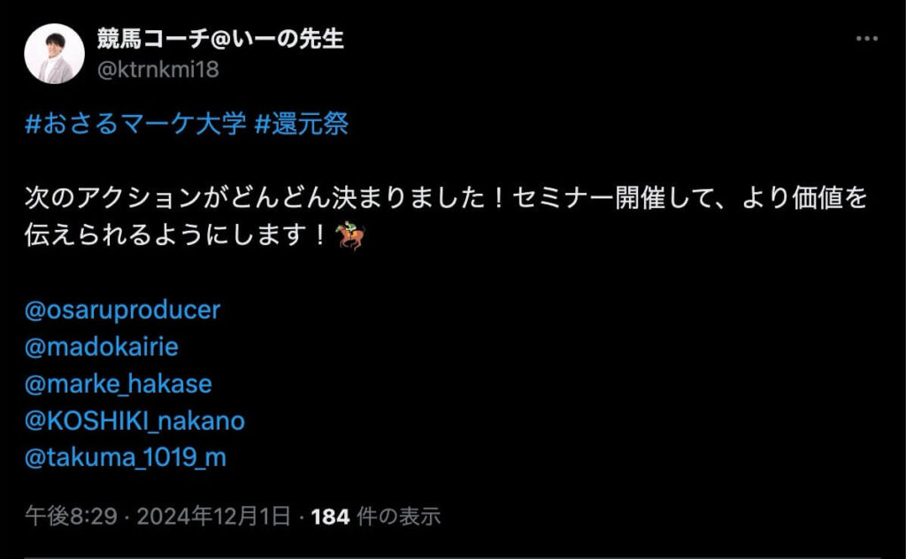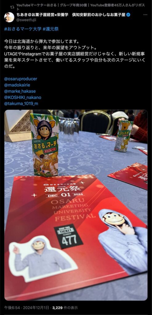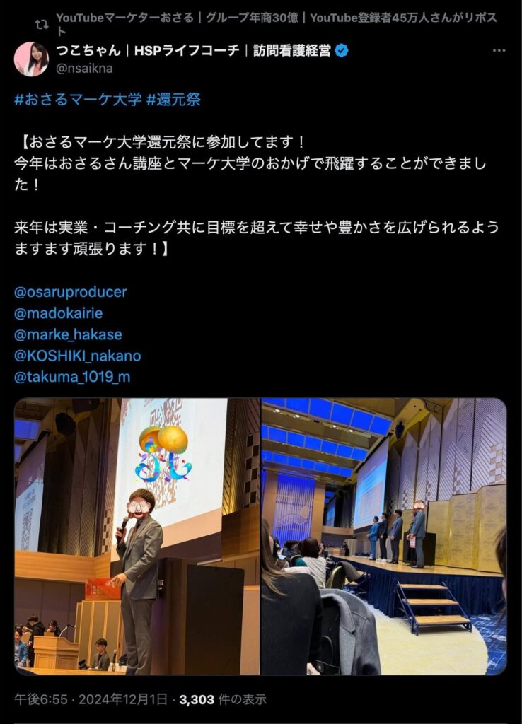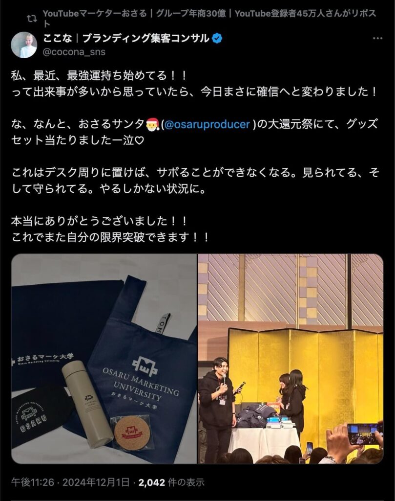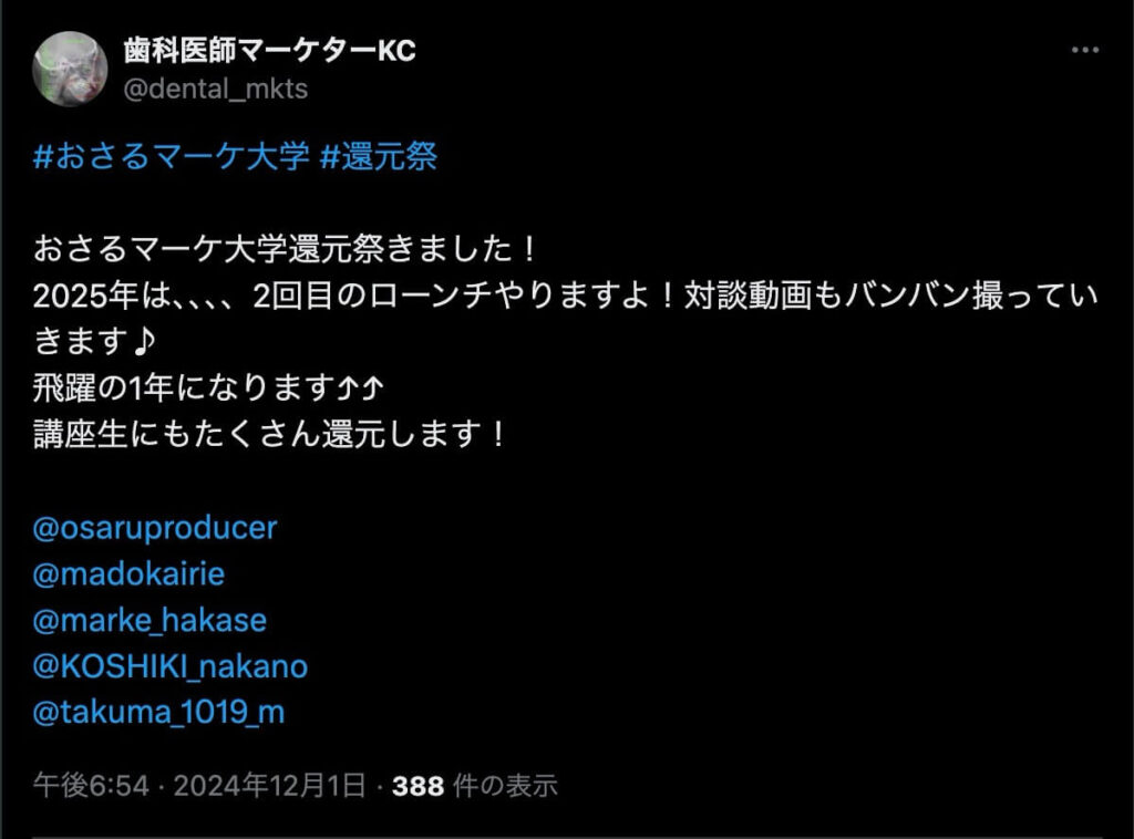 2024年12月1日、おさるマーケ大学の累計受講生数が5,000名突破したことを記念して「還元祭」と題した特別企画を開催しました。