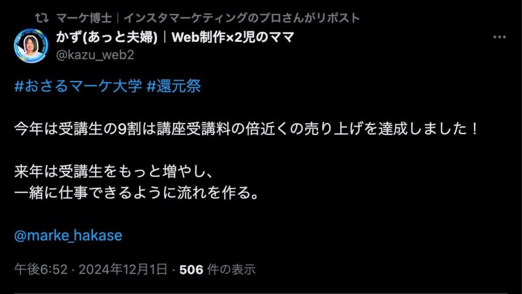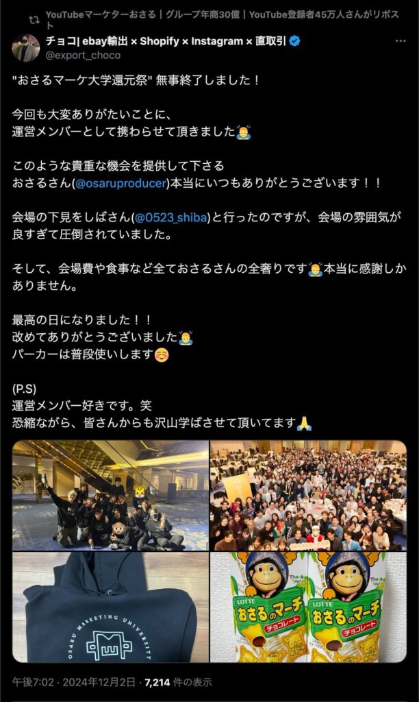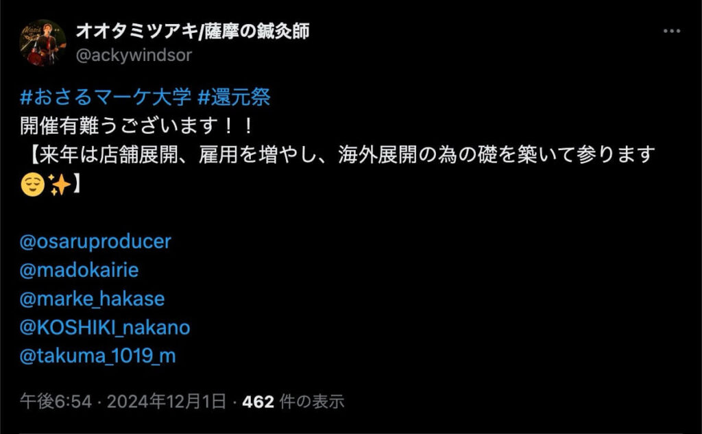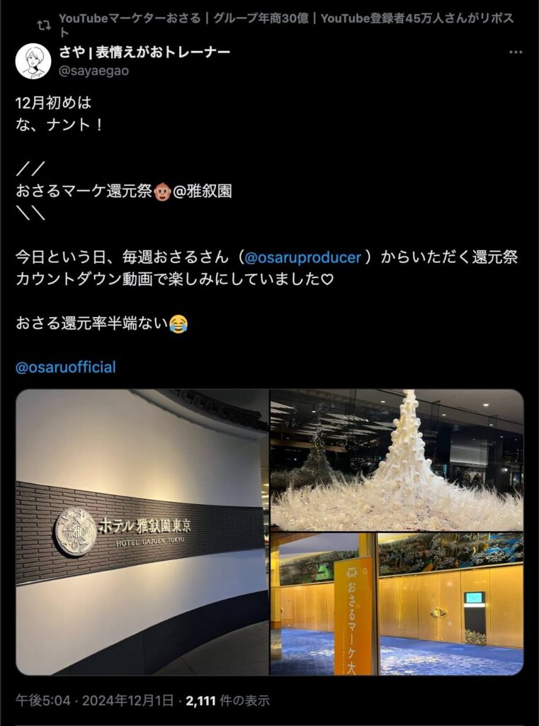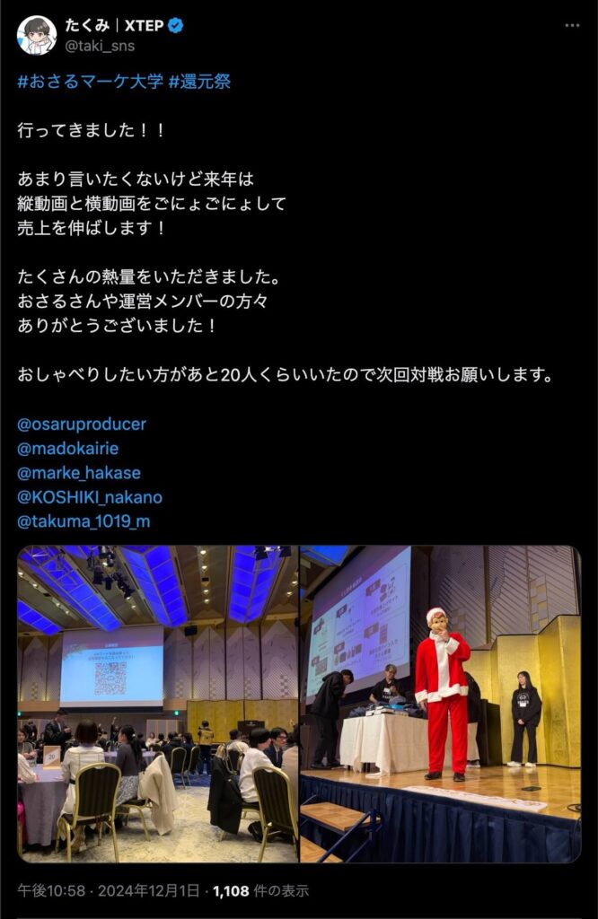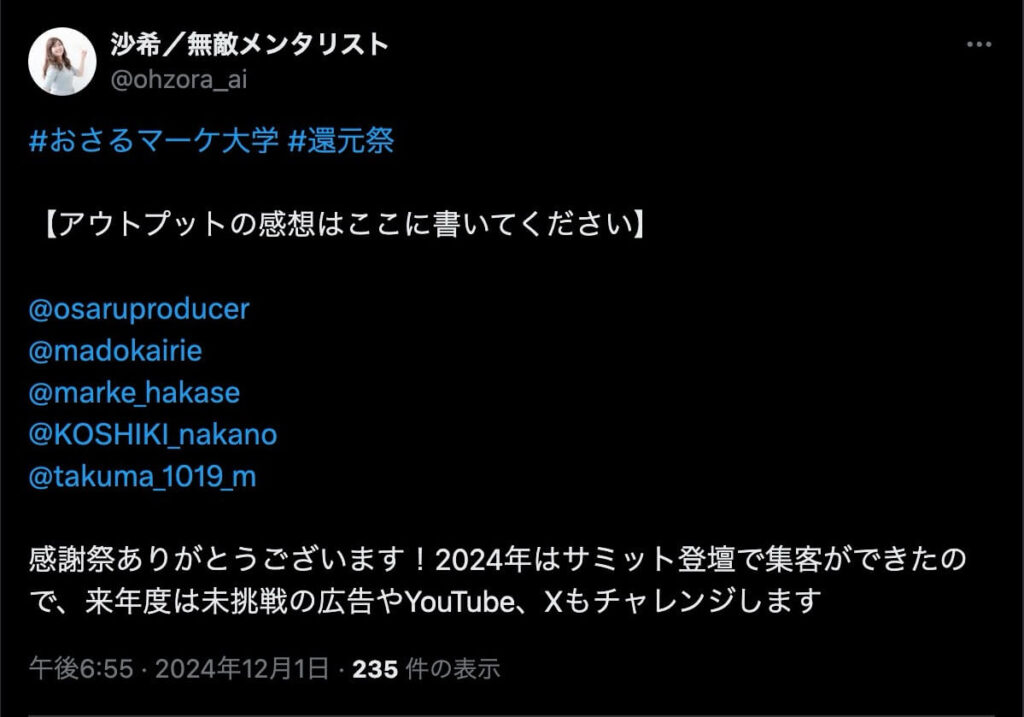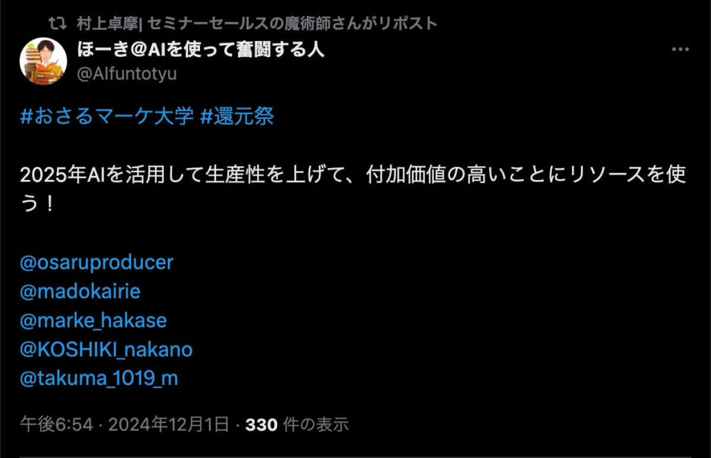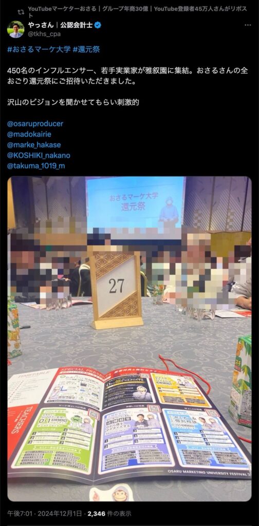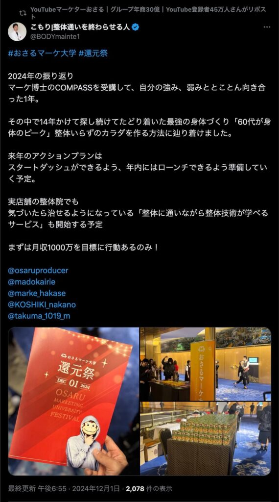 2024年12月1日、おさるマーケ大学の累計受講生数が5,000名突破したことを記念して「還元祭」と題した特別企画を開催しました。