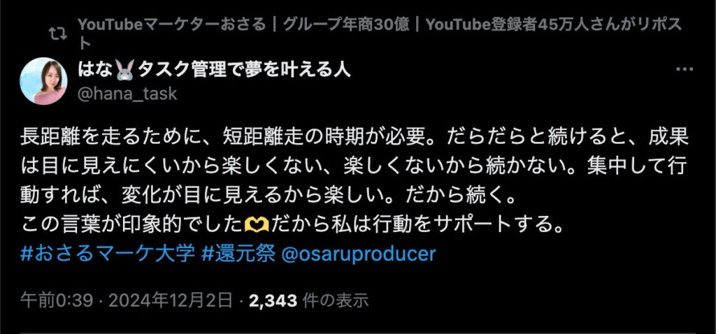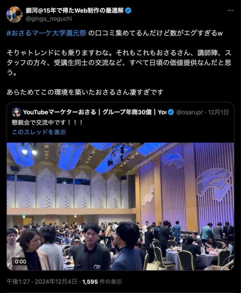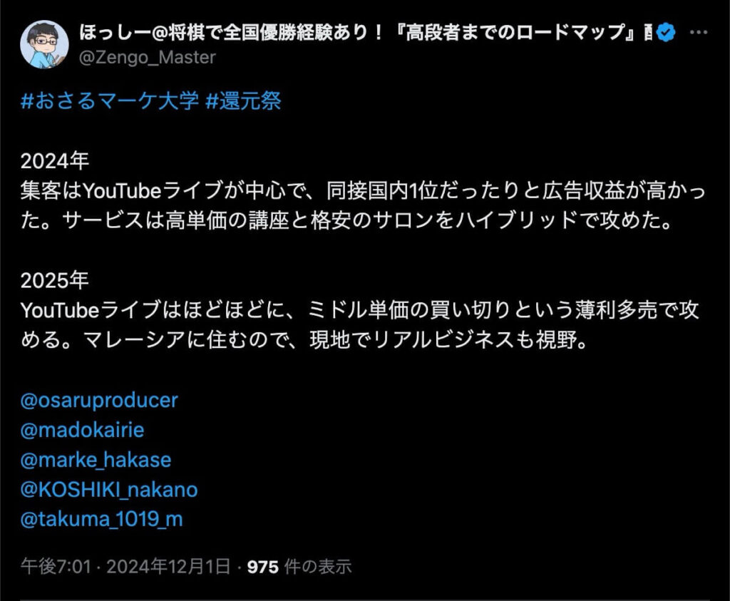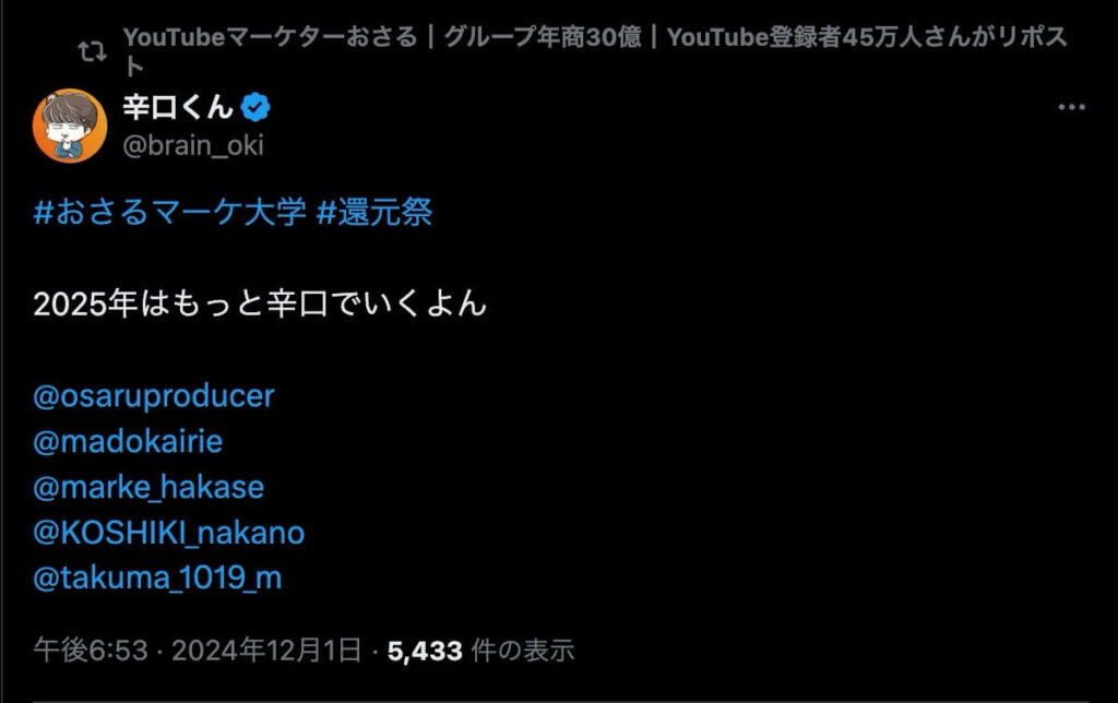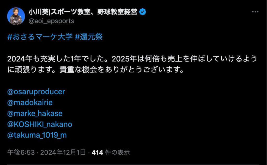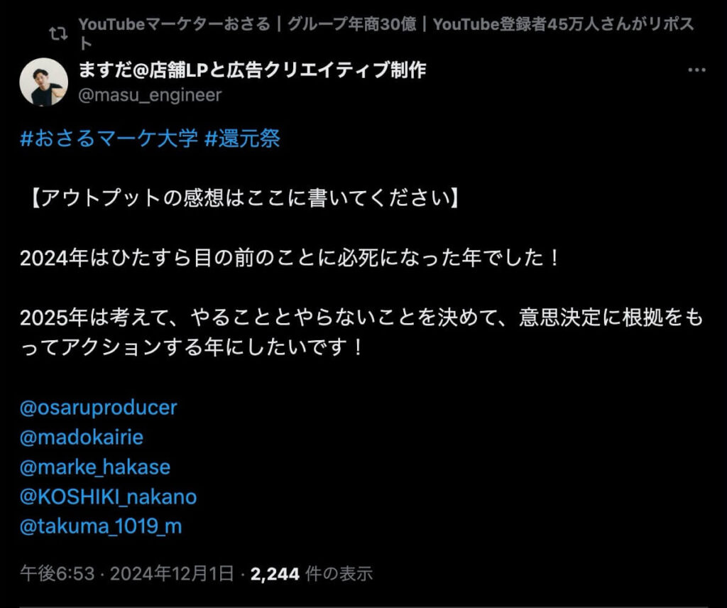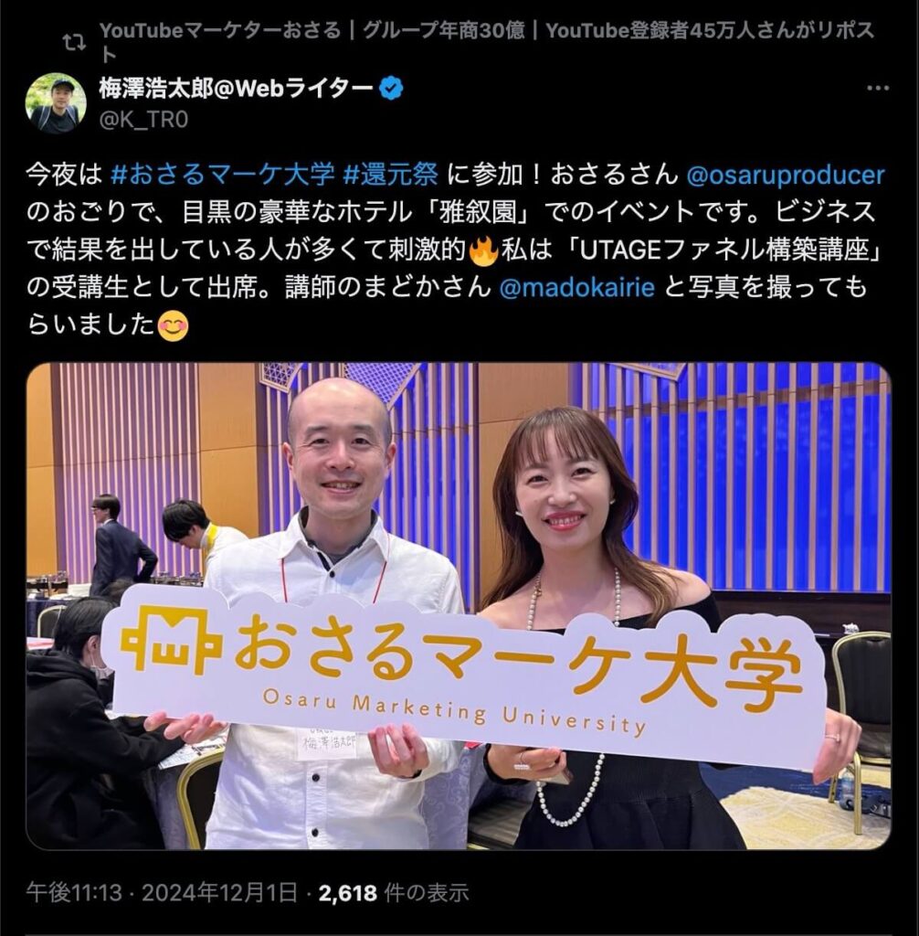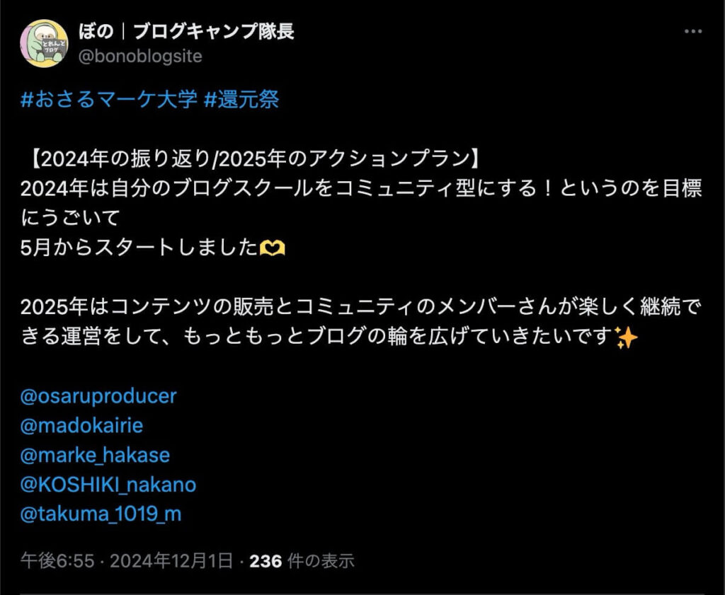 2024年12月1日、おさるマーケ大学の累計受講生数が5,000名突破したことを記念して「還元祭」と題した特別企画を開催しました。