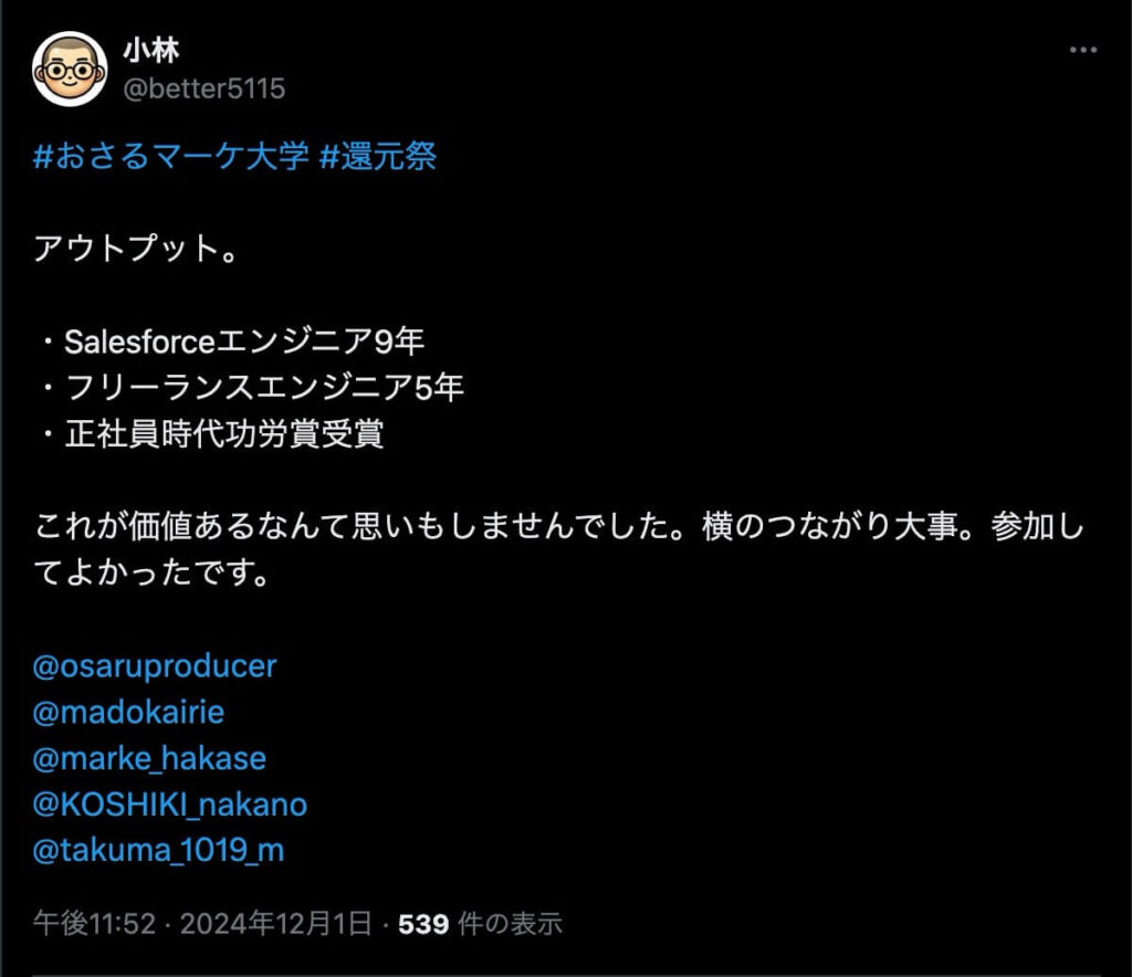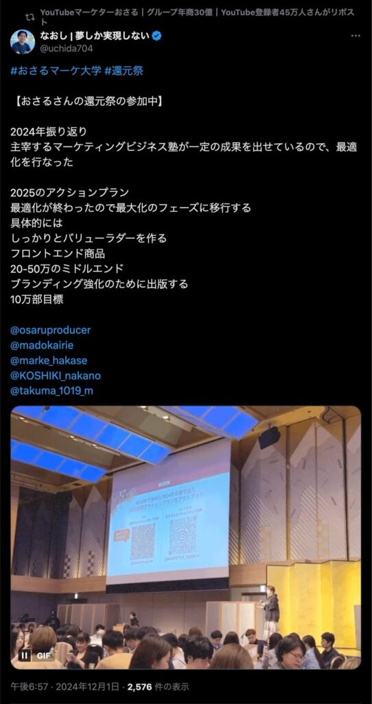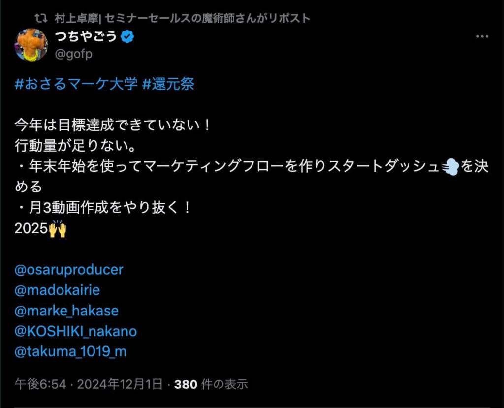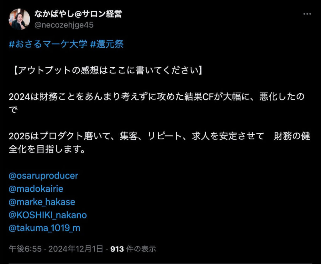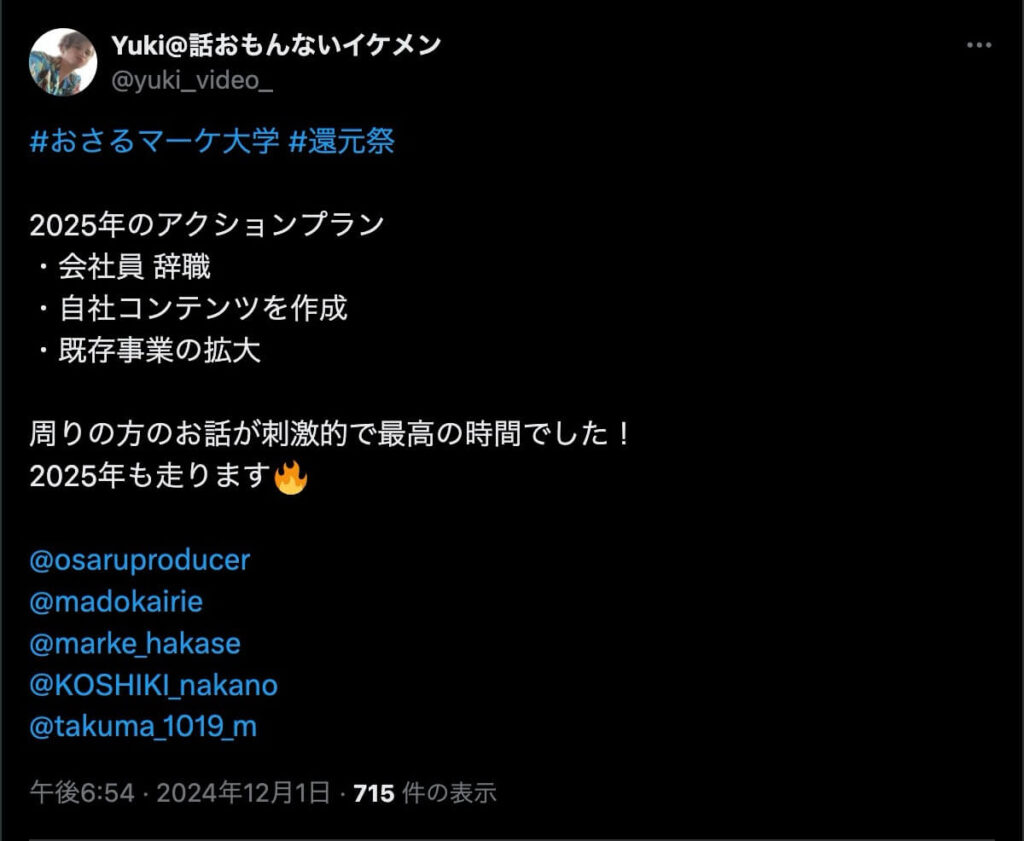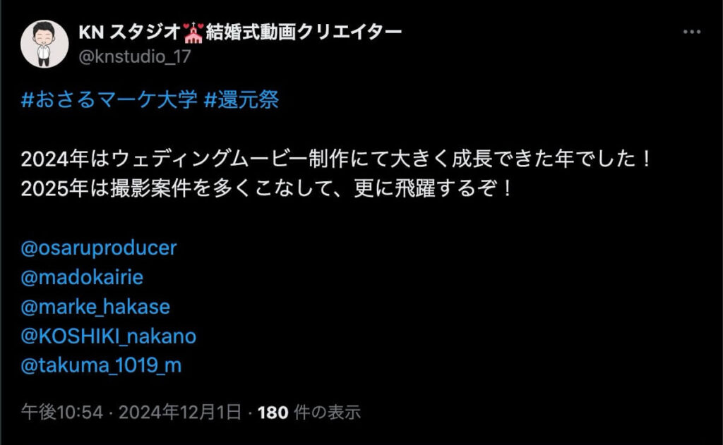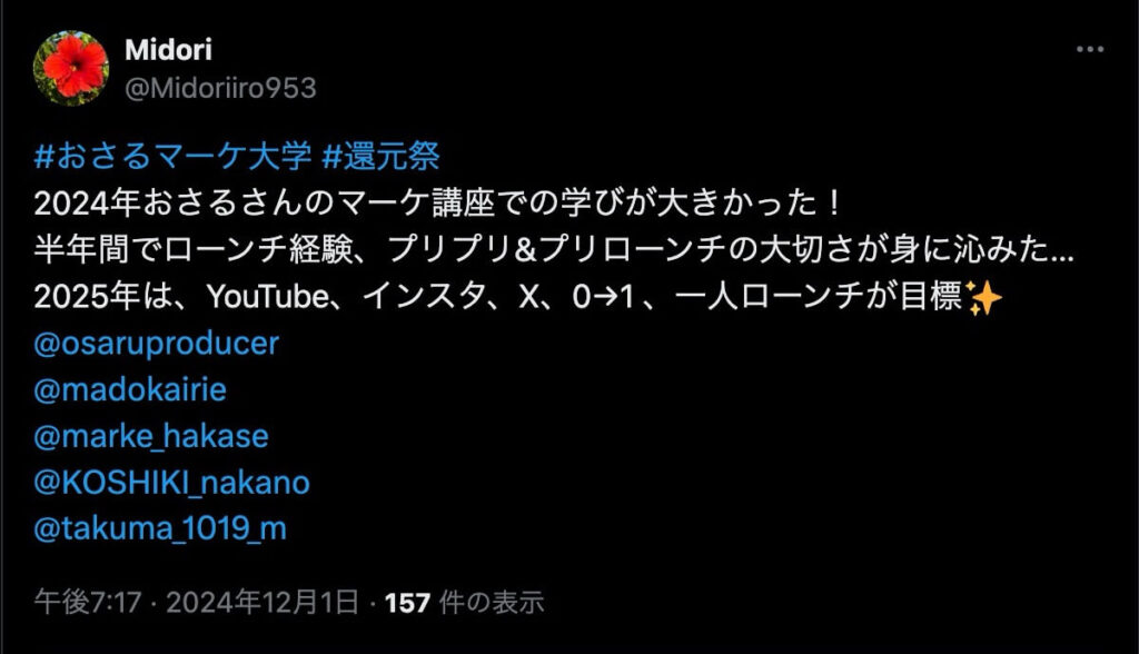 2024年12月1日、おさるマーケ大学の累計受講生数が5,000名突破したことを記念して「還元祭」と題した特別企画を開催しました。