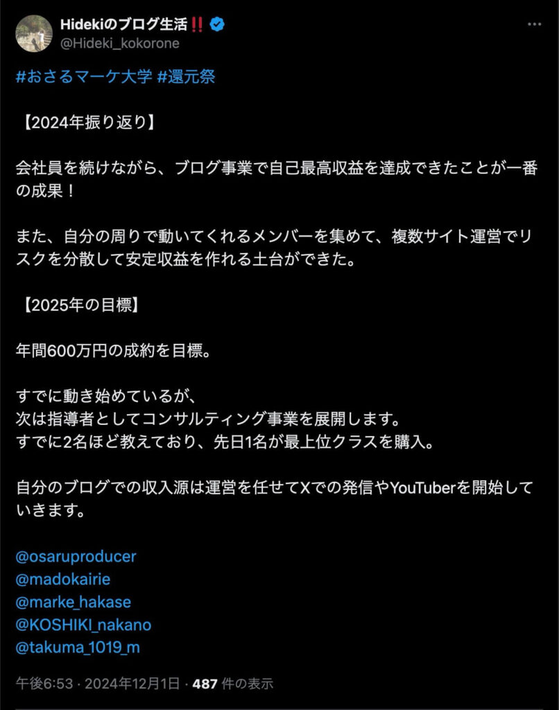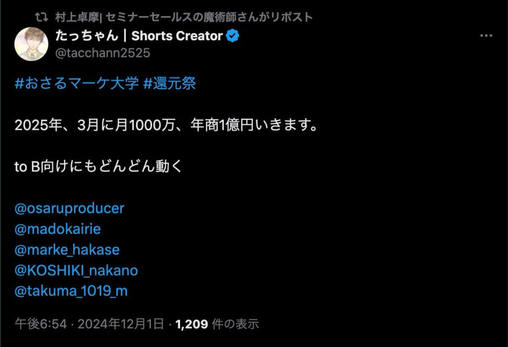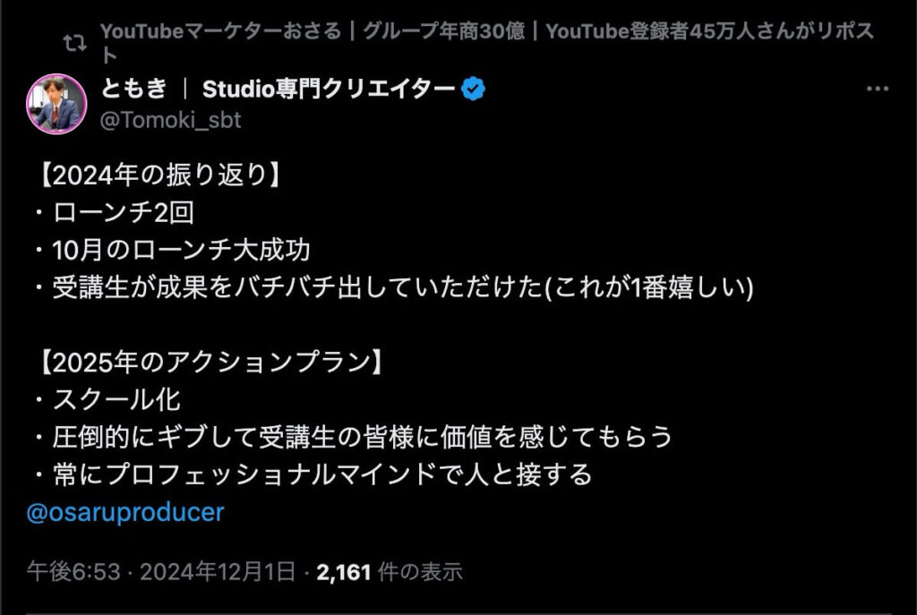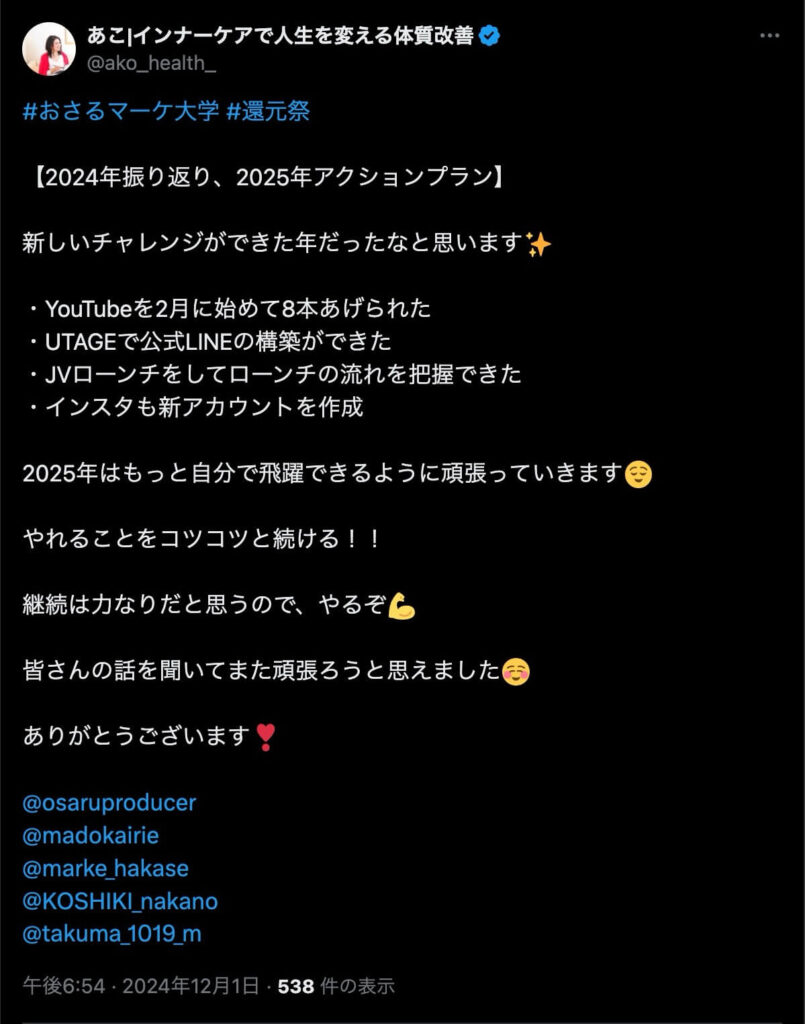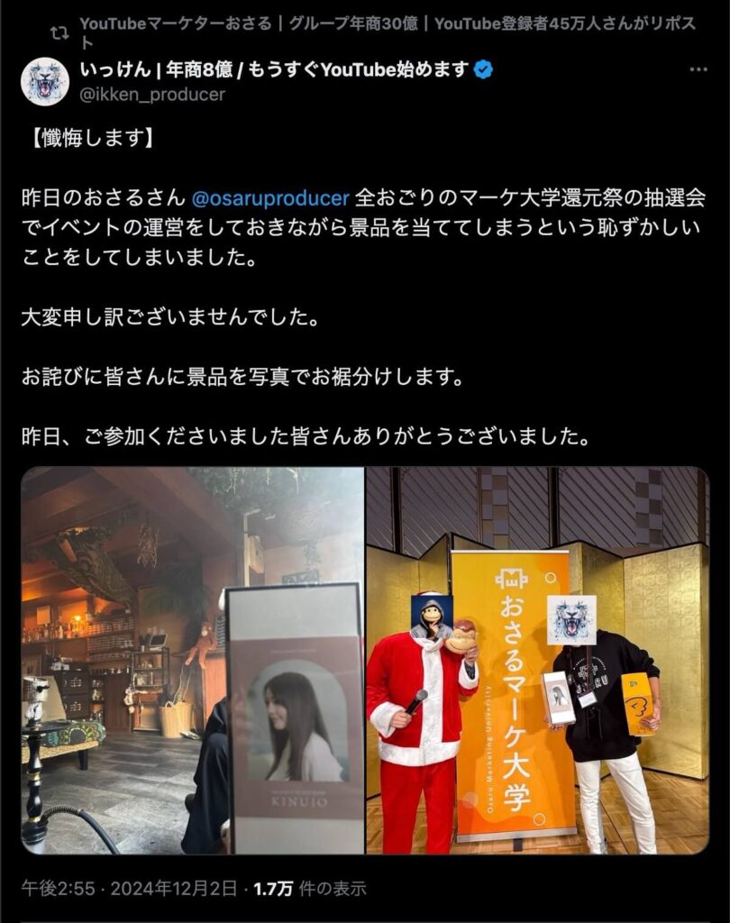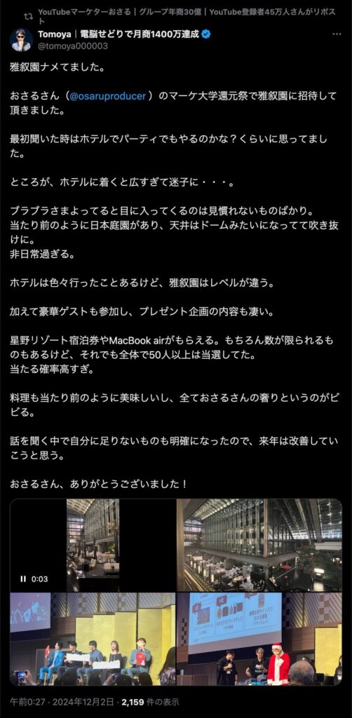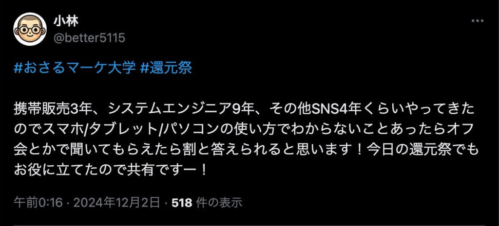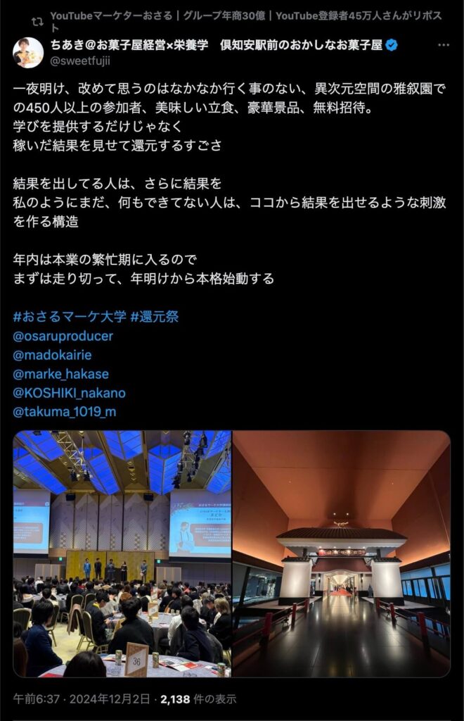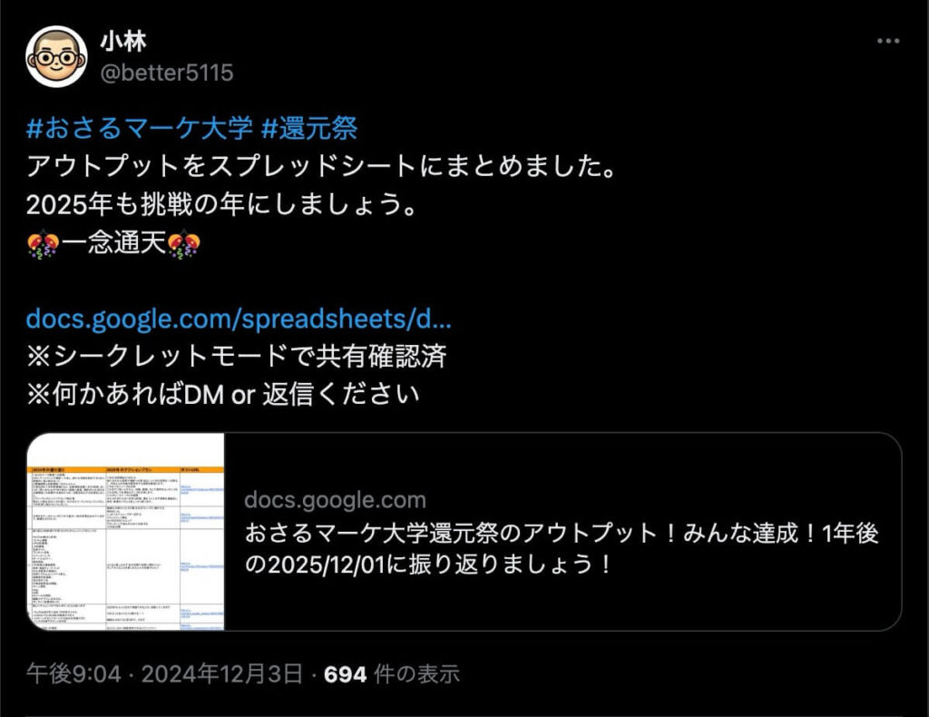 2024年12月1日、おさるマーケ大学の累計受講生数が5,000名突破したことを記念して「還元祭」と題した特別企画を開催しました。