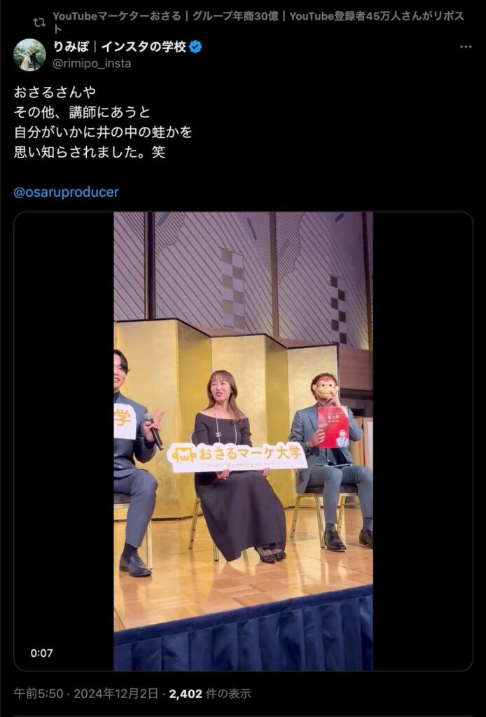 - おさるとのインスタLIVEで認知度・影響力を拡大