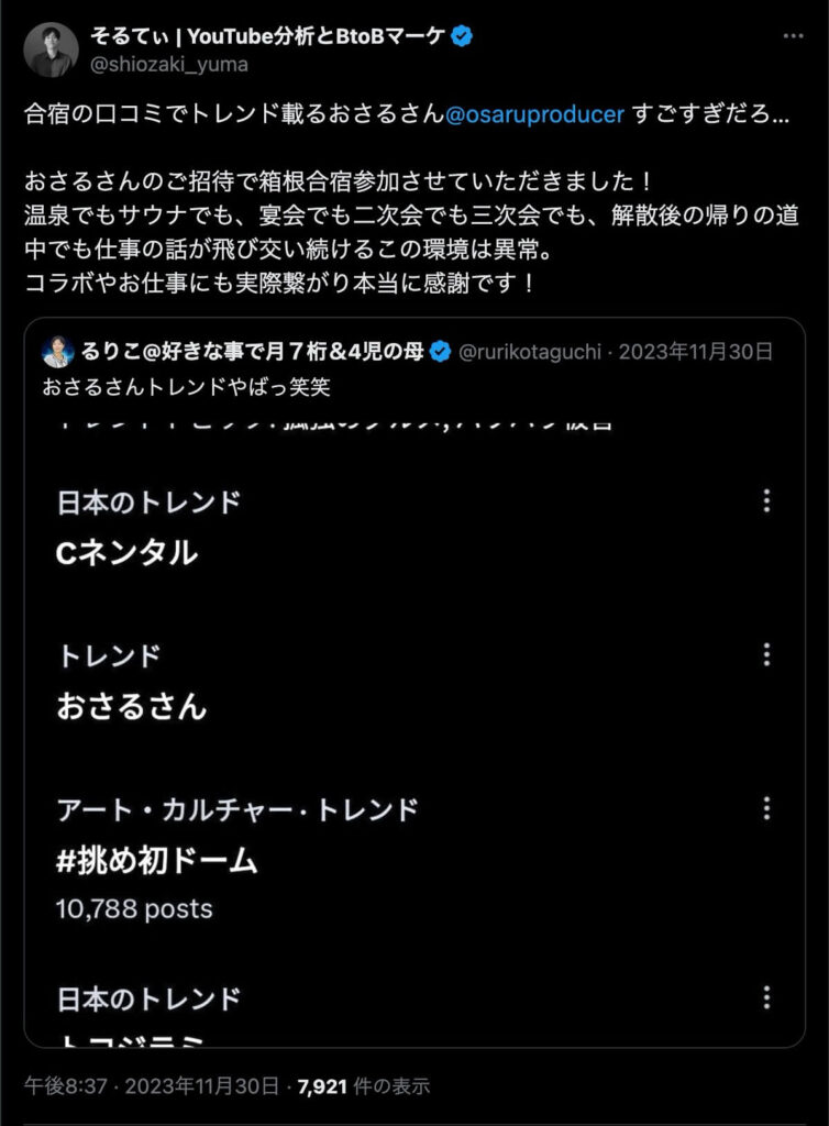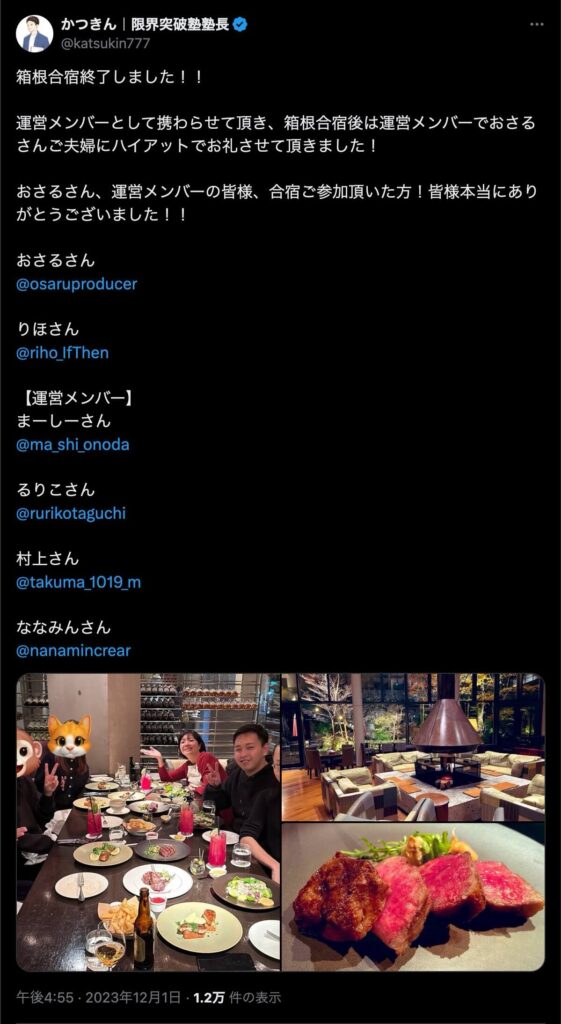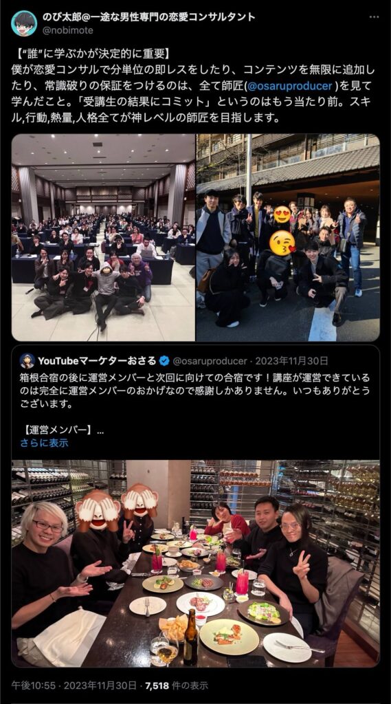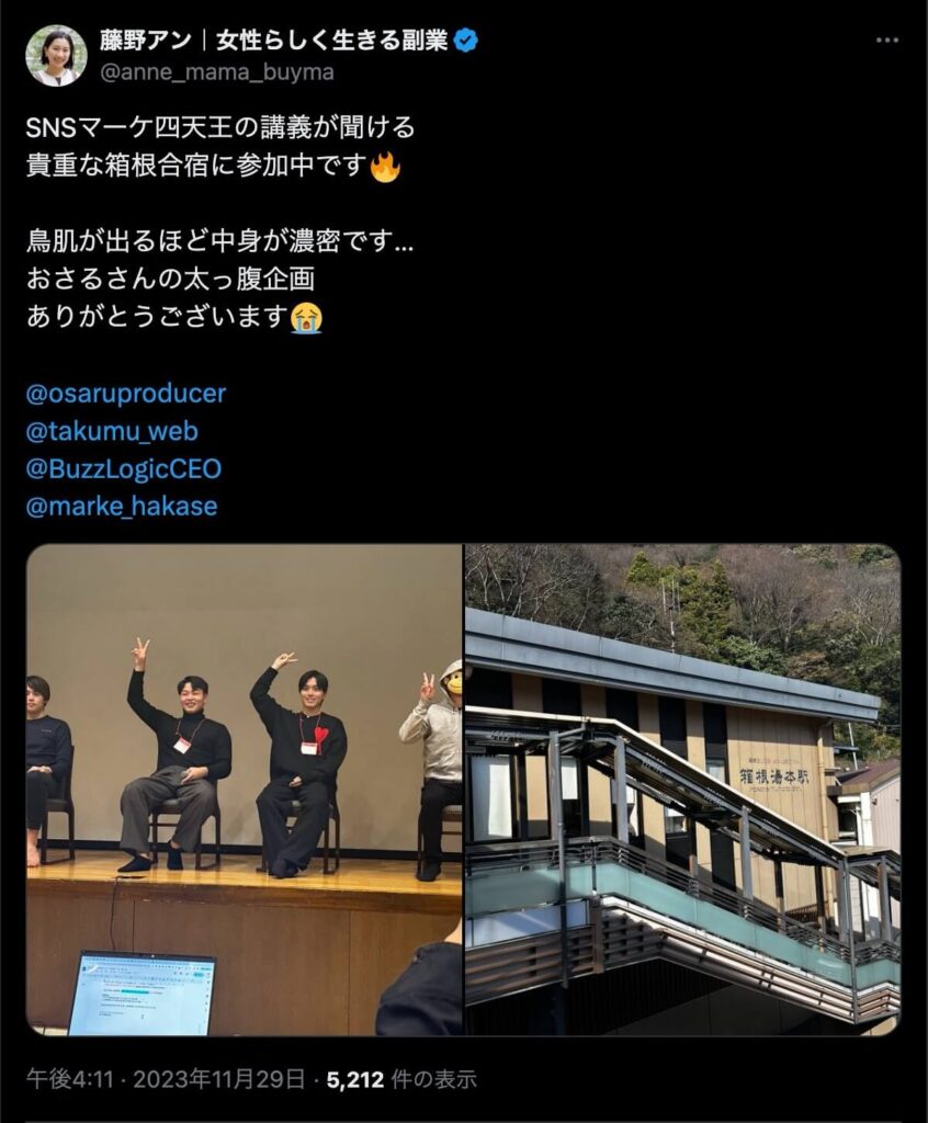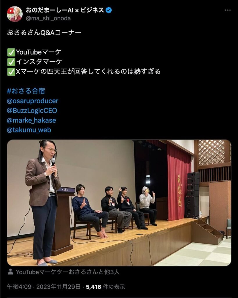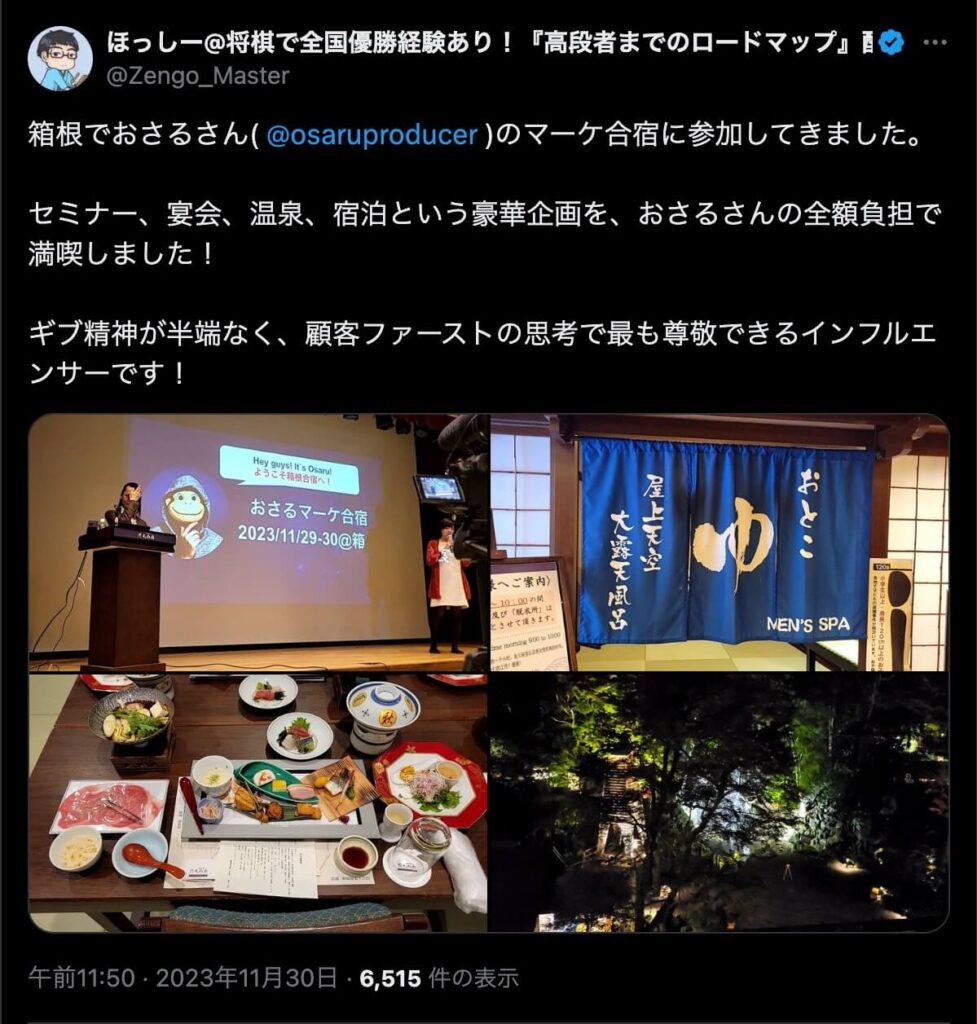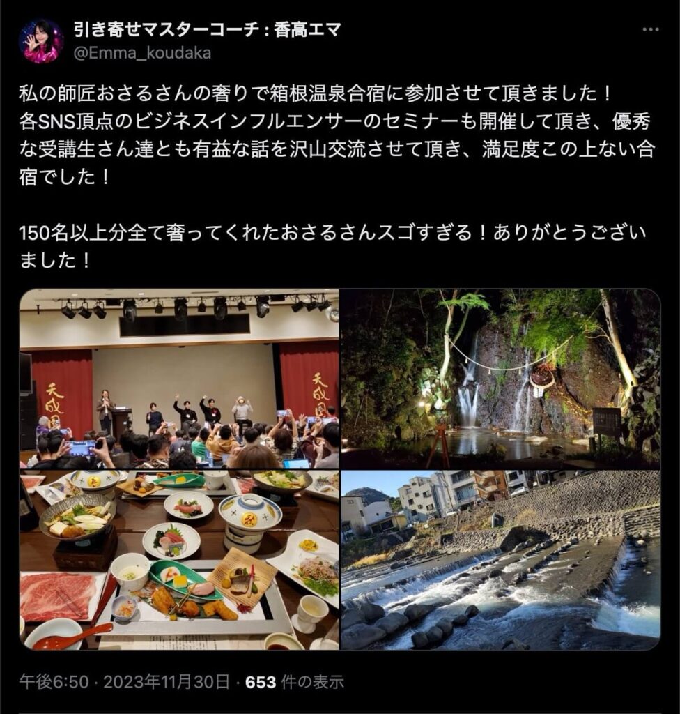 2023年11月29日、おさるマーケ講座のおさるマーケ合宿が開催されました。今回は総勢150名以上が参加する特大規模となりましたので、その様子を参加者の口コミとともにお伝えします。
