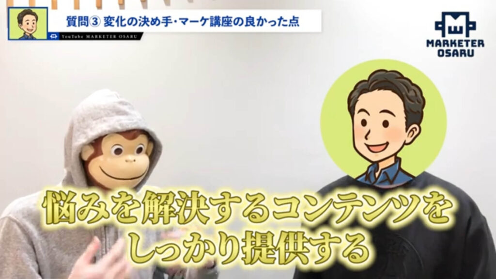 おさる:僕が担当するクライアントさんでも、構造的に解決が難しいような悩みなんですけど、そこをなんとか悩みを解決できて。今回の話は非常にためになりますので、ぜひ最後まで聞いていただければと思います。
