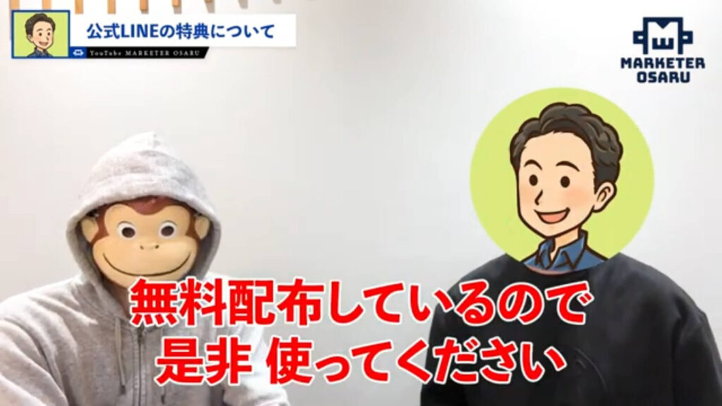 おさる:最後に宣伝と視聴者へのメッセージというところで、やまやんさんの公式LINEがありますので紹介をしていただきたいんですけど、特典があるという感じですかね?