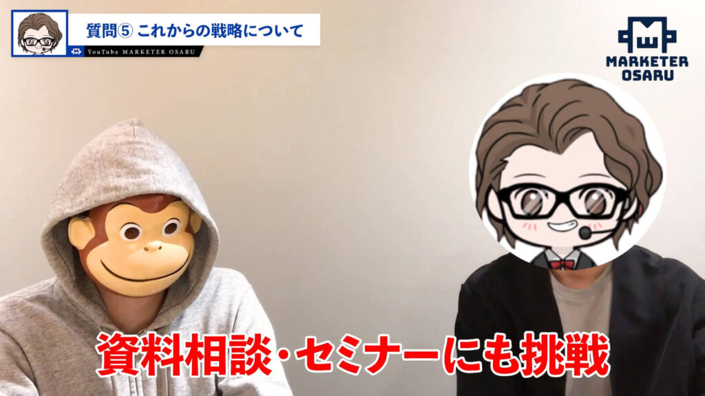 おさる:おっ、それはまた楽しみですね。セミナーとか個別相談とかもやっていくんですか?