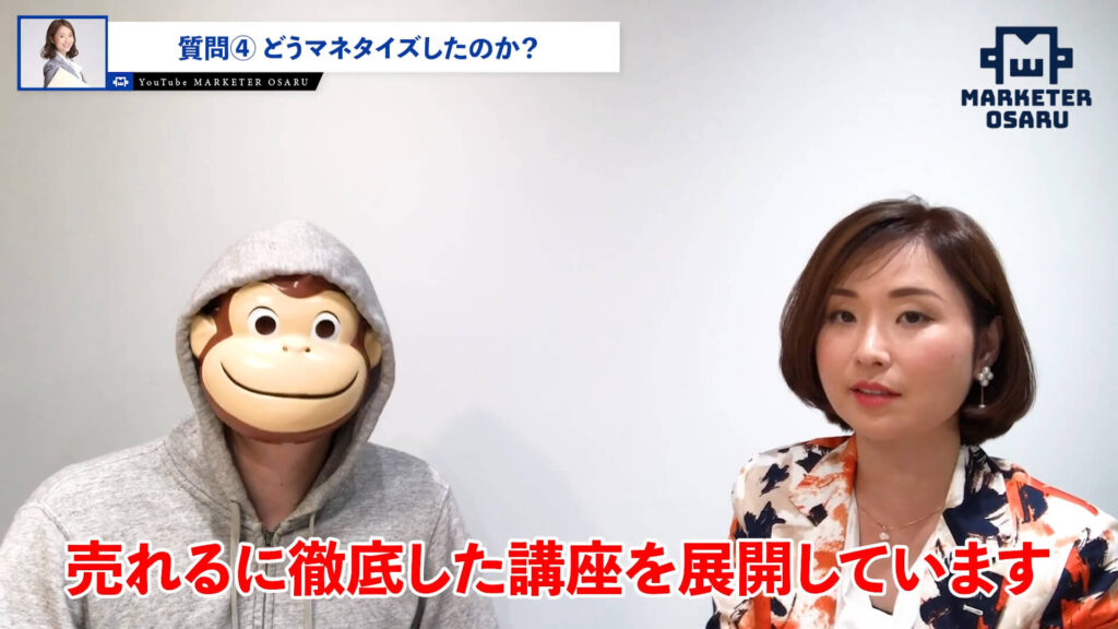 おさる:それで講座と構築代行、そしてセールスのプロモーション全体まで一括でやっているんですね。