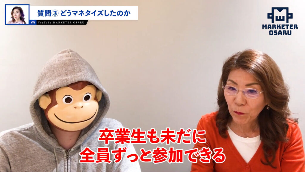 おさる:僕の講座では無期限サポートを導入しているんですけど、みゆきさんも何か継続的なサポートってされてますか?