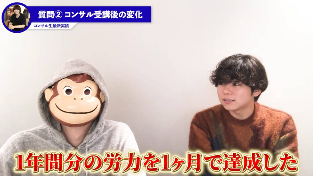 おさる:僕のコンサルに入って動画だけにするとどうなりましたか?