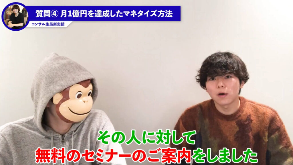 おさる:2億円とかいけると思いますよ。プレゼント企画をやったり、特典もさらに強化したりとか、ローンチ動画もあったらセミナーの着席数も上がるので。