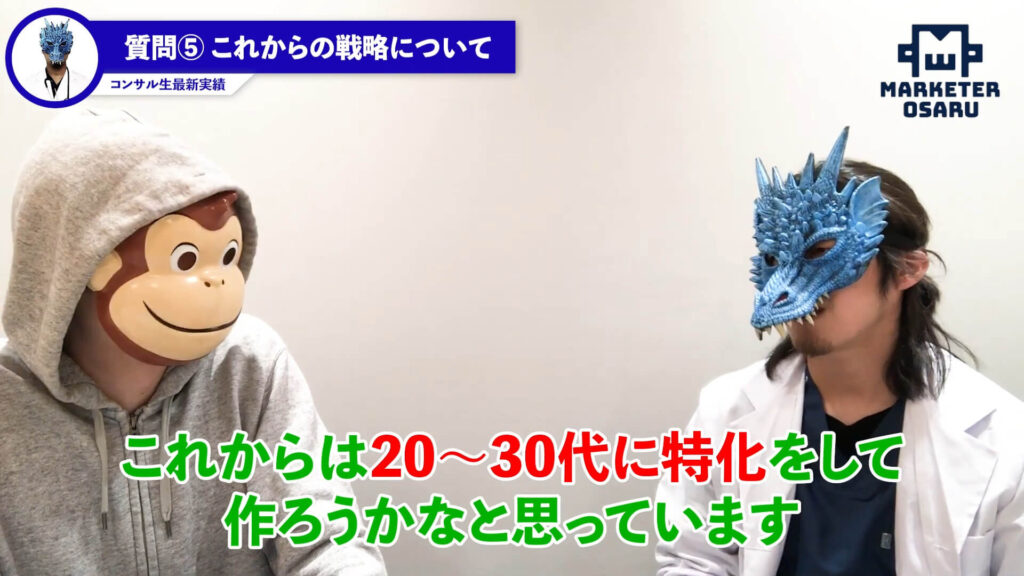 Dr.Iryu:そうですね。YouTubeで顔出ししたほうがいいよみたいな話もあったんですけど、おさるさん自身が「全然大丈夫ですよ」と言われていて「大丈夫なんだ」と思って、そのままパクらせていただきました。