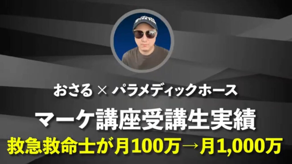 おさる:救急救命士で月収1,000万円を2回達成されているのでわかると思いますが「そんなの売れるの?」とかニッチなジャンルだから普通に思うかもしれません。これがマーケティングを駆使してやっていくということですし、しかもYouTubeの登録者数が1,400人でそれで1,000万円を連発して本当に時代が変わっちゃった。