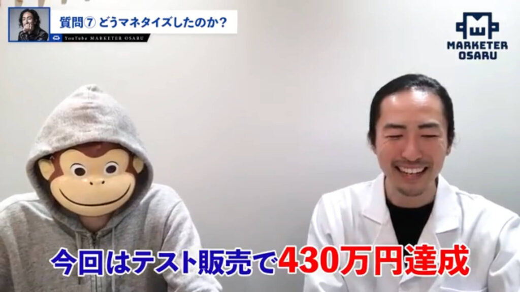 おさる:今回はテスト販売で430万円達成されたということで。