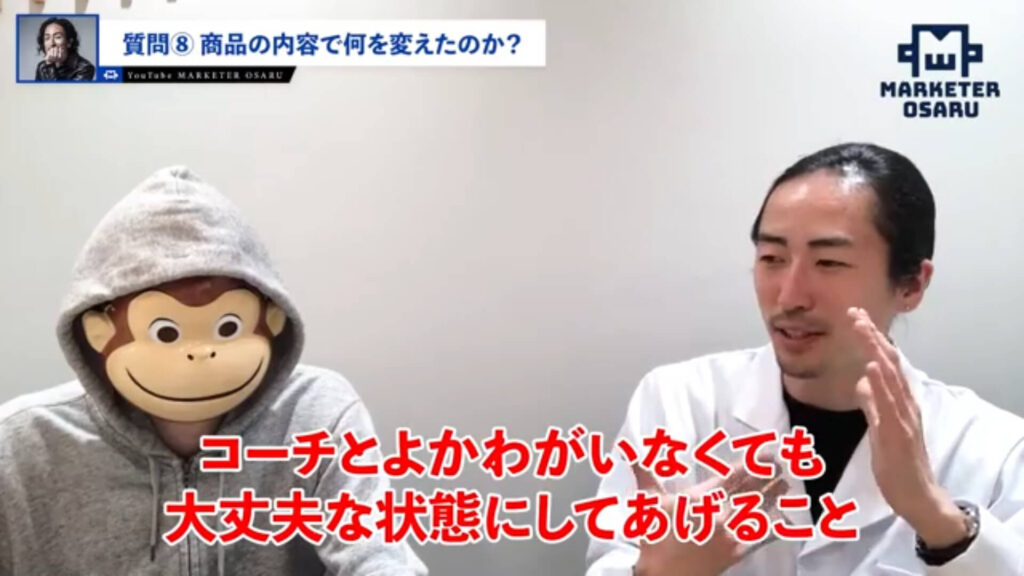 おさる:こんな形で商品設計も作っていただいて。ぜひコーチ事業の方は参考にしてください。