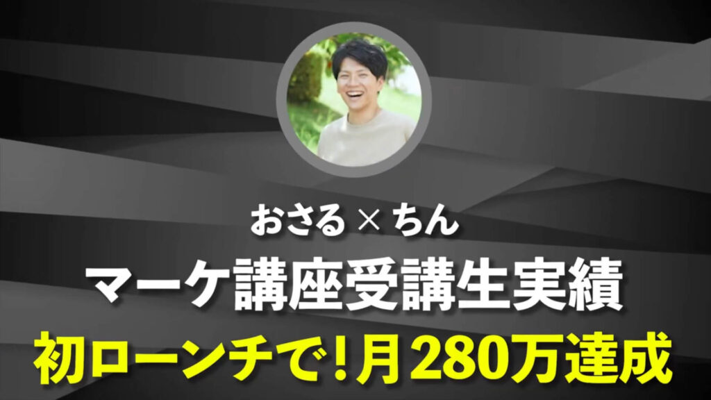 おさる:今回は、SNS動画マーケティング×コンテンツ販売の受講生、成果報告者のちんさんに来ていただきました。よろしくお願いいたします。