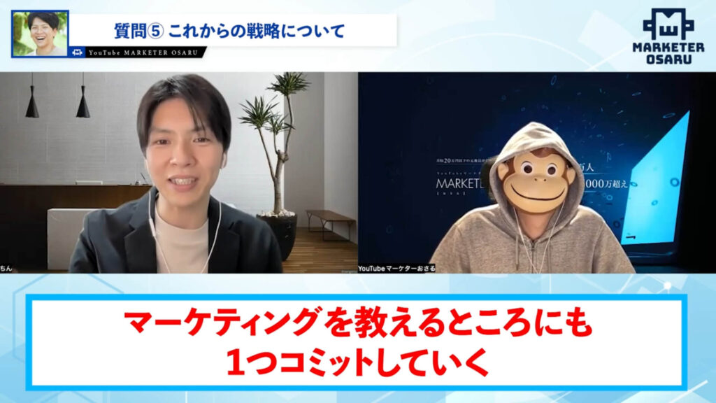 おさる:質問5個目のこれからの戦略についてです。5月にもローンチするところなので、また成果が出たら最新実績としてぜひ対談をお願いしたいんですけど、これからの戦略をどういう風にされていくのかをお聞かせいただけますか。