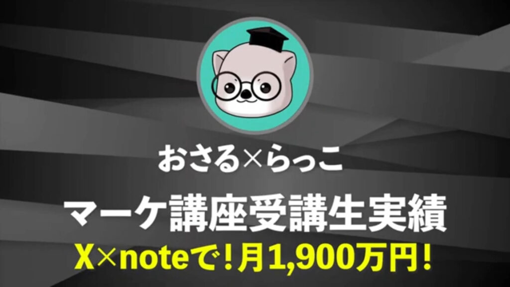 本当にこのポジションはらっこさんのみしか僕は今知らなくて、もちろんX×noteでやっている人は数多くいるんですよね。ちゃんと僕の講座に入っていただいて、ちゃんと売上が出ているのは初めてというところですね。