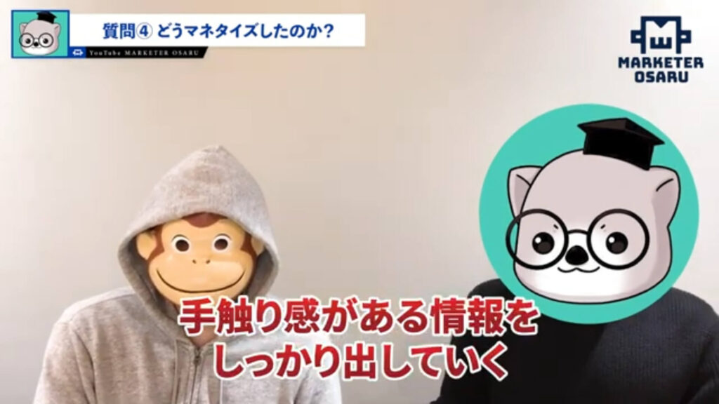 おさる:すばらしいことをおっしゃってくれました。僕が事業相談を表に出していない理由としては、マーケティングの部分を表に出すとキャッチーだし、らっこさんレベルになってくると価値を感じるからです。対談に出てくださったのは本当にうれしいなと思います。