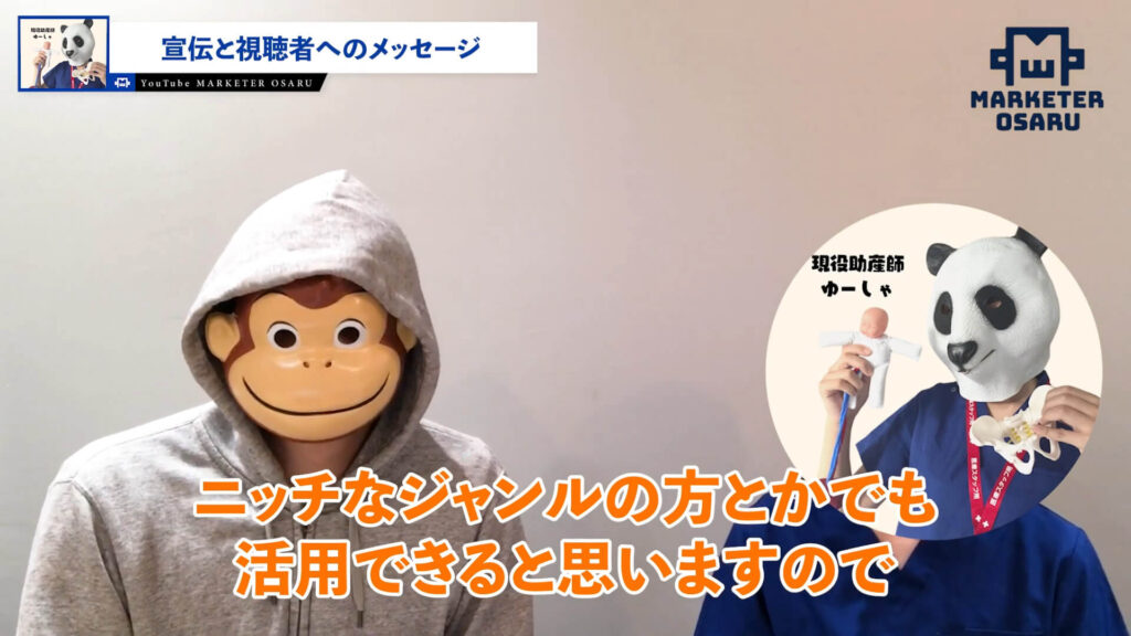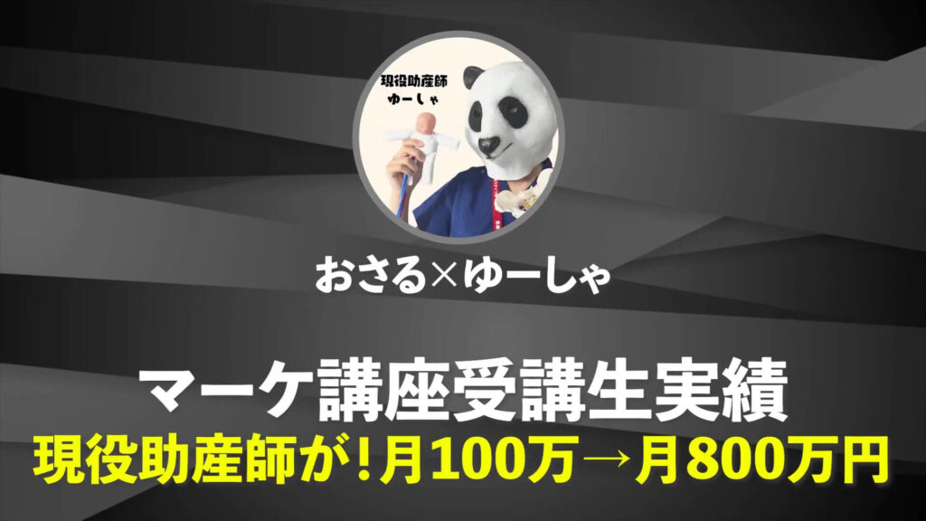 おさる:今回は、SNS動画マーケティングを駆使して月800万円の売上を達成された、現役助産師のゆーしゃさんにお越しいただきました!よろしくお願いします!
