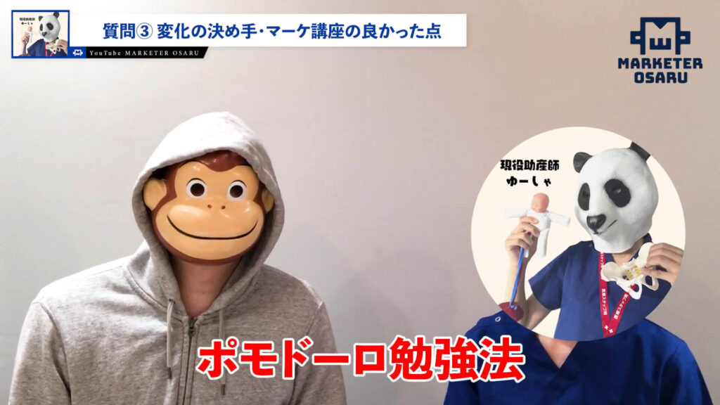 ゆーしゃ:はい!おさるさんの講座って、本当にさまざまなジャンルの方が受講されているんですよね。で、その皆さんがちゃんと成果を出されているのがすごく印象的で。