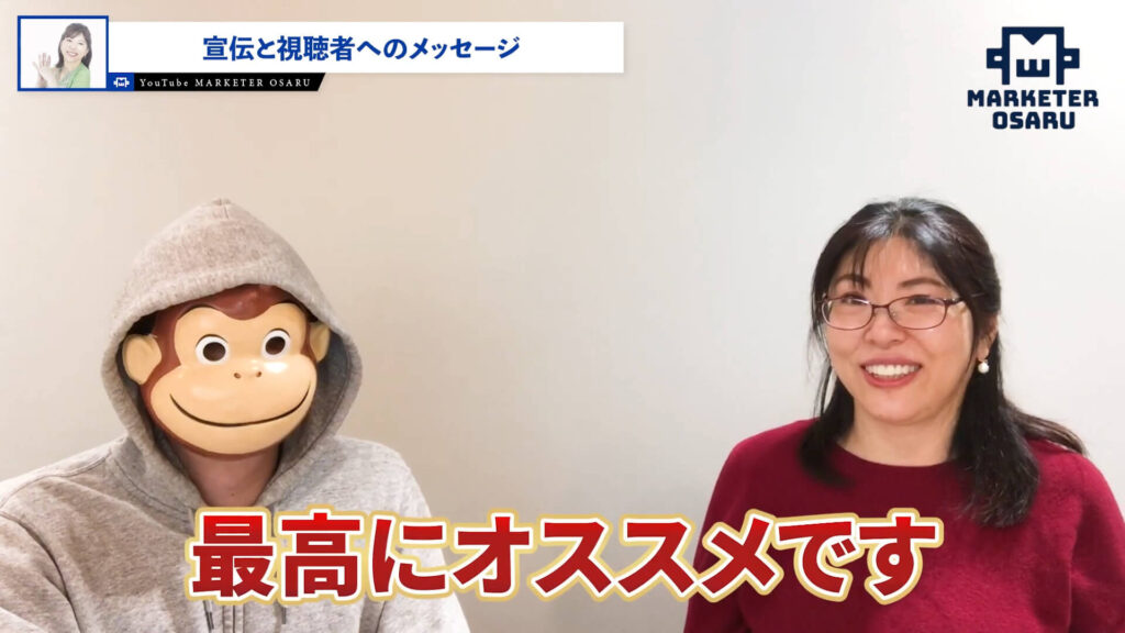 おさる:最後に、視聴者の方に向けてメッセージをお願いします。特に「おさるの講座、気になっているけど……」という方に向けて、どんな方におすすめですか?