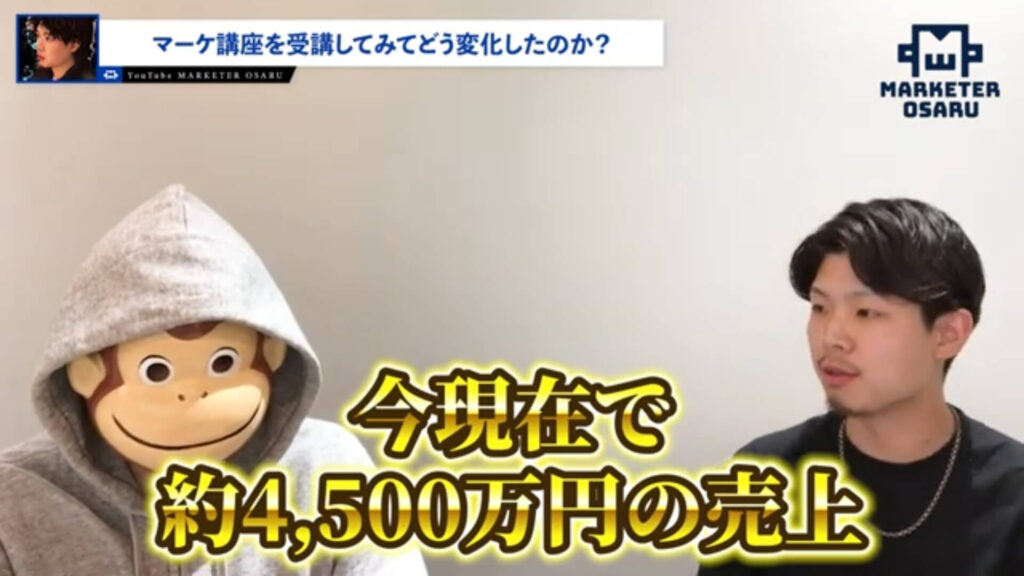おさる:そうなんですね。僕の講座にも参加していただいて、今回は売上がバンと上がったのですね。