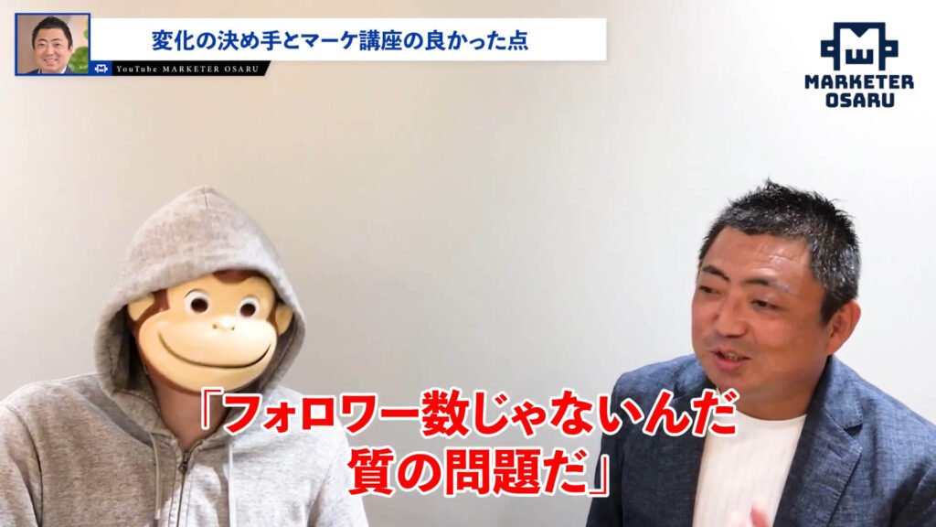 おさる:情報を出して、しっかり信頼も取っていって、顧客の質が上がって。広告経由でも素晴らしい方たちはいると思うんですけれど、傾向的に特に物販は態度が悪い。「なにで稼がせてくれるの?」みたいな、そういったタイプが多いですよね。
