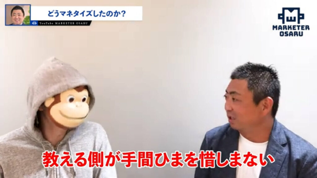 おさる:目立ったもん勝ちじゃないですが、有益な情報を表に出して信頼してもらう。ちゃんと有料級の個別のサポートだったり1対1で細かく教えて、情報だけじゃなくて体験させてあげたり、そういうところでマネタイズをしていく。