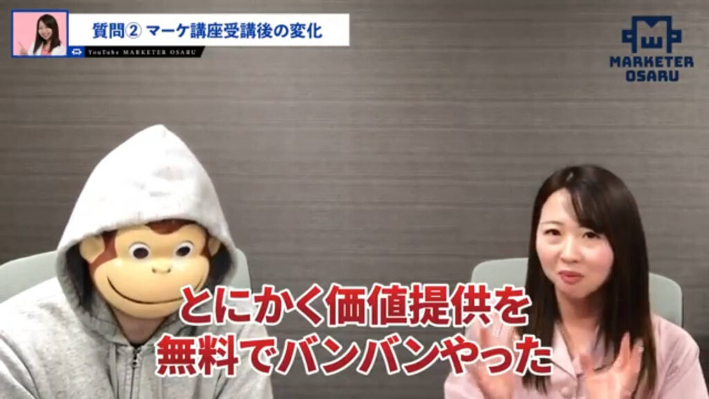 おさる:この動画を見た方は、ぜひ登録してチェックしてみてください。現在、審査制の形で運営されているんですね。マーケティング講座も今後おこなう予定ですか?