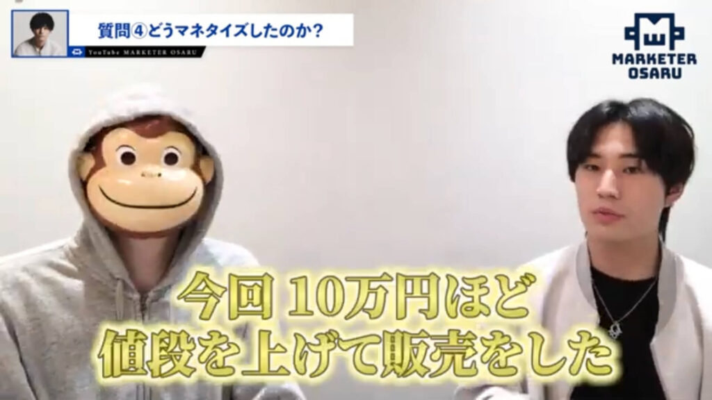 おさる:実際にもっと深掘っていきたいんですけども質問4つ目。販売導線はすごくシンプルだと思うんですけど、どうマネタイズしたのかを教えていただけますでしょうか?