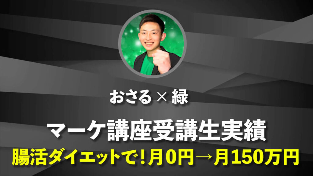 こんにちは、おさるです!今回は「食べて痩せる」常識破りのダイエットで、YouTubeを活用して150万円の売上を達成された「緑さん」にお話を伺いました。もともとは整体サロンを個人で経営していた緑さん。オフラインのビジネスに限界を感じながらも「組織を持たずに自由に生きる」道を模索していたところ、僕の講座に出会ってくれました。