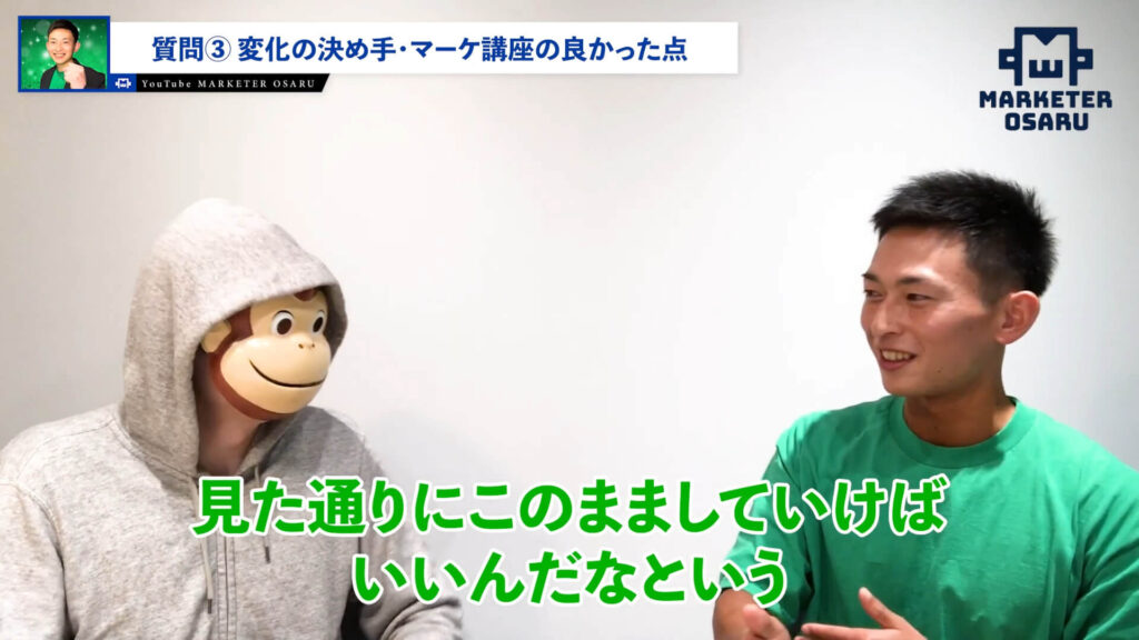 おさる:じゃあ、実際に僕の講座に入ってから、どんなふうに進めていったんですか?