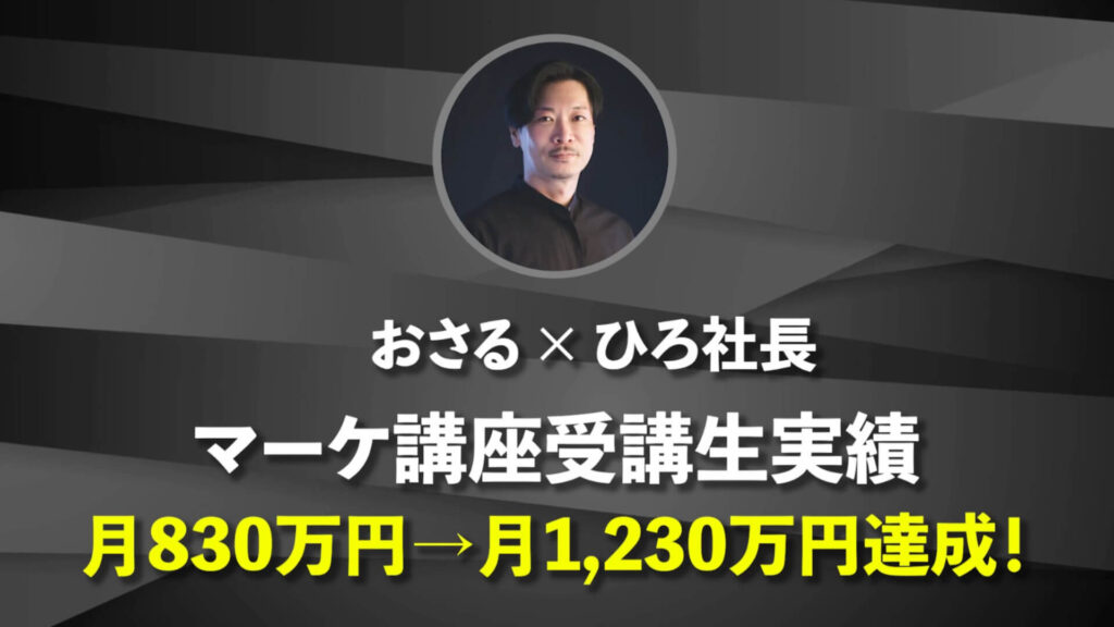 ひろ社長:はい。で、そこで受講生の皆さんが「月に1,000万円稼ぎました」とか「半年で大逆転できました」みたいな成果を出しているのを見て、自分も本気で学びたいと思っておさるさんに連絡を取りました。