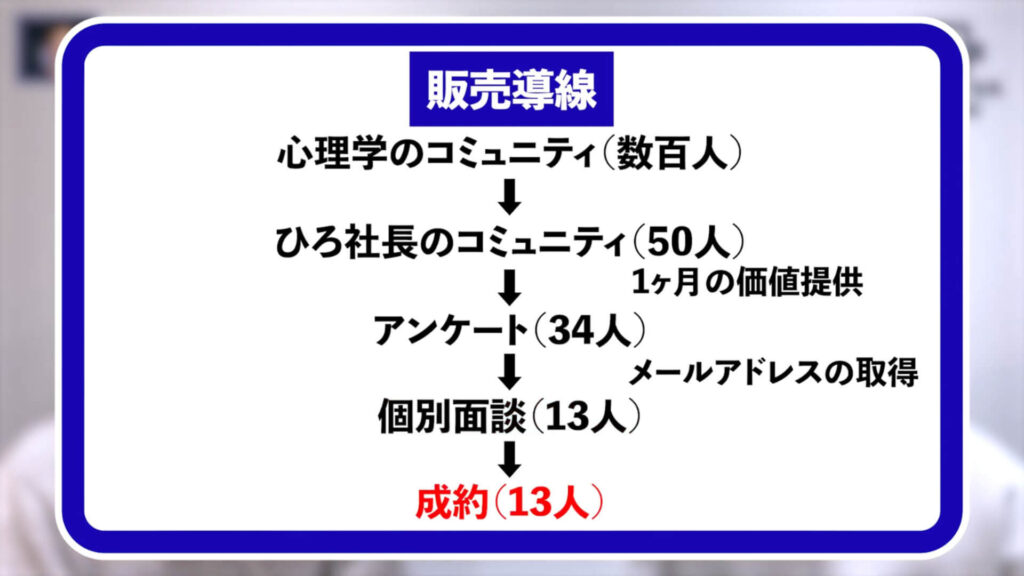 ひろ社長:はい。13名と個別面談をおこない、なんと13名全員が成約してくれました。商品単価は1本100万円近く、短期間で1,000万円以上の売上になりました。