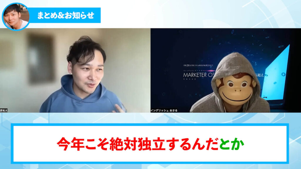 おさる:今回は実績者のはらさんに来ていただきました。今回は本当にありがとうございました。