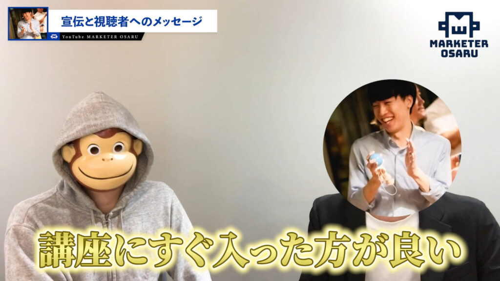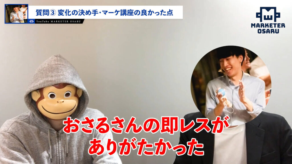 おさる:それで講座に来てくれたと。ちなみに、そのときなぜ僕の講座を選んでくれたんですか?