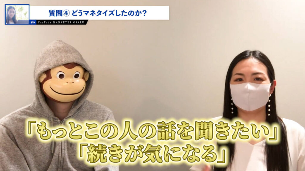 おさる:「この人何者?」という状態を作ったということですね。そのあとはどうですか?
