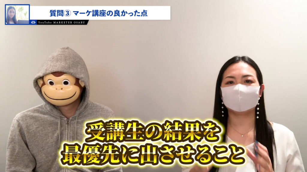 おさる:僕がやっているからそれを真似して、そうしたらまた受講生のクチコミも良くなって。素晴らしいですね。今お話ししていただきましたけど、全部参考にできると思います。
