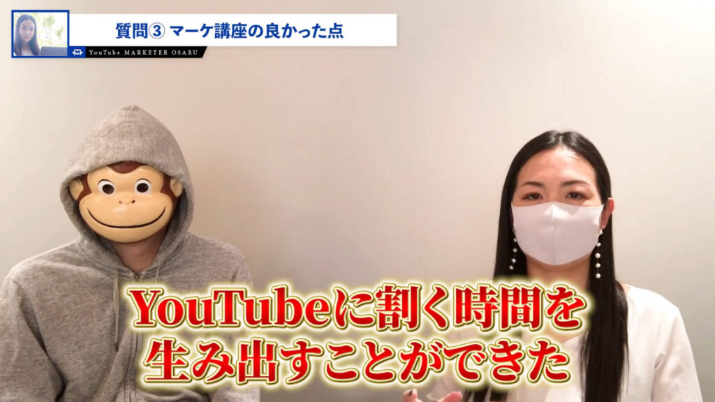 はっぴー:3つ目は、講座を体系化したことでYouTubeに割く時間を生み出すことができました。今まで個別でやっていたときは、YouTubeどころじゃなかったんですよ。こんなに時間ができるんだと思って。