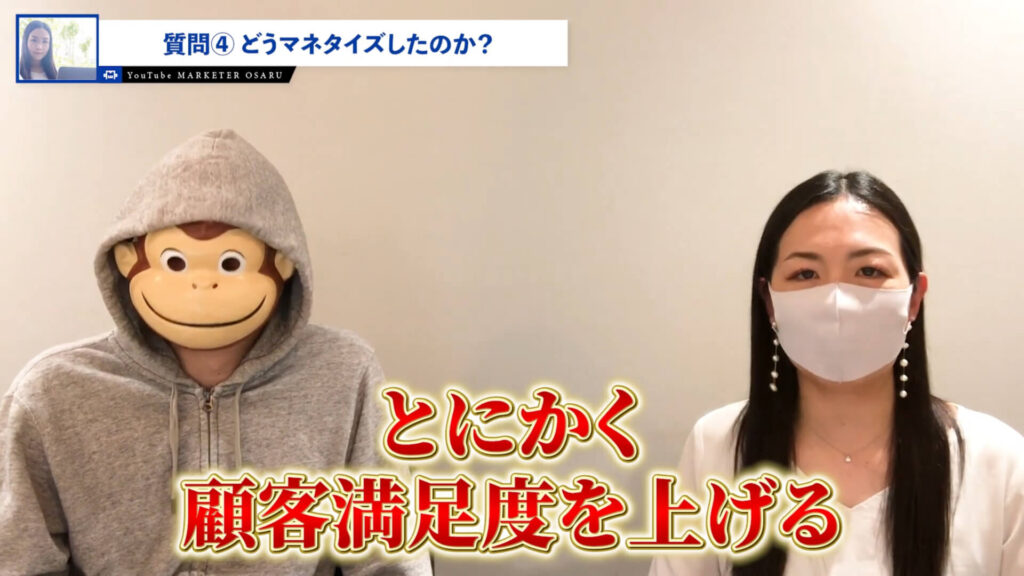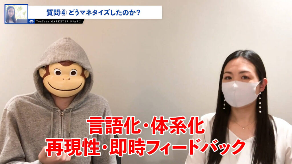 おさる:そこで整理して、ちゃんと仕組化して時間も作って売上も上がってというところで、YouTubeで資産性のあるところもしっかりやっていくと。あとインスタライブをやられているから話が上手というか、けっこう皆さん早口ですね。