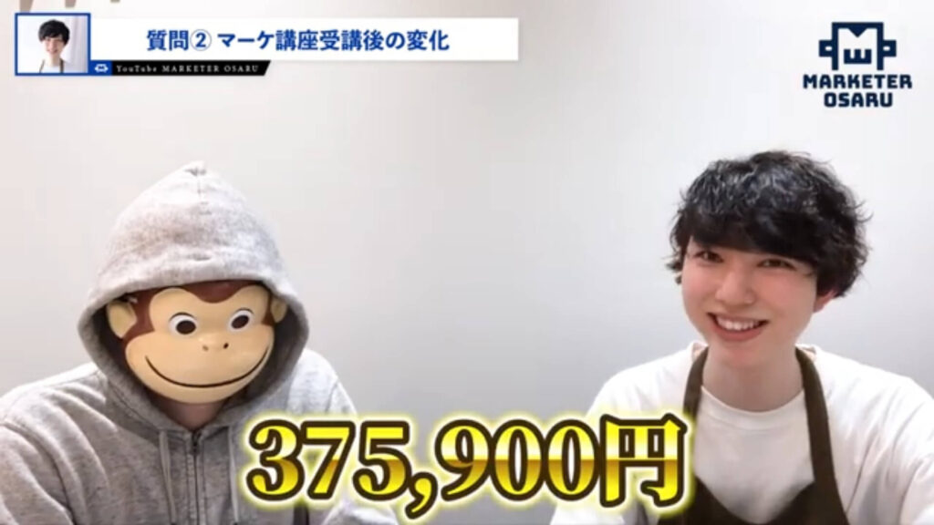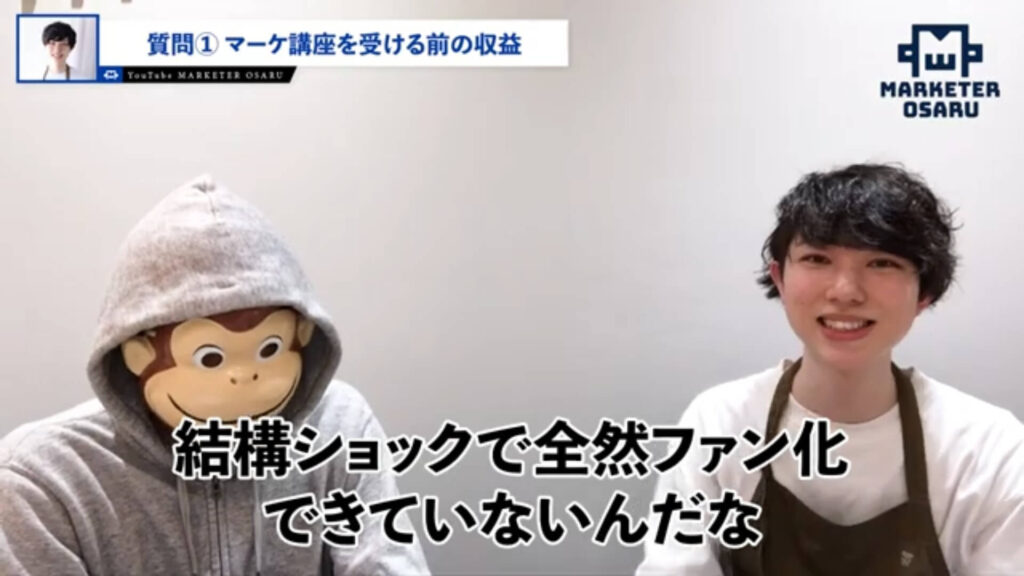 おさる:1つ目の質問です。マーケ講座を受ける前の収益、購入前の悩みなどについて教えてください。