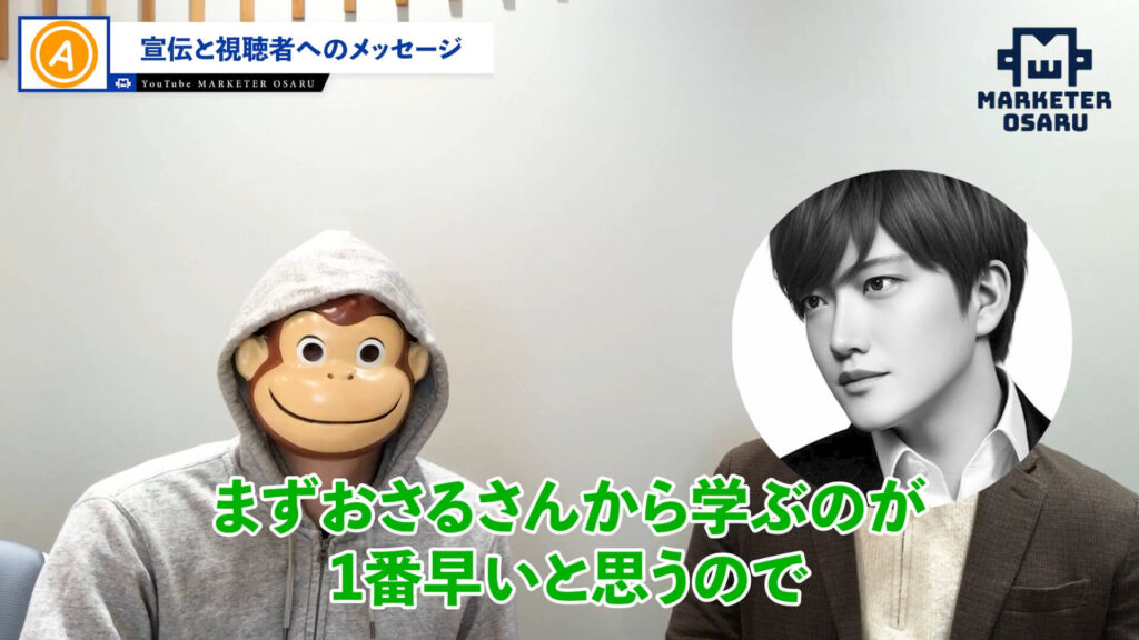 AKIRA:そもそも「イングリッシュおさる」というコンテンツの質の高さを知っていたので、最初は「おさるさんってすごいんだな」と思っていたんです。そこからYouTubeマーケターとして活動されていることに気づきました。