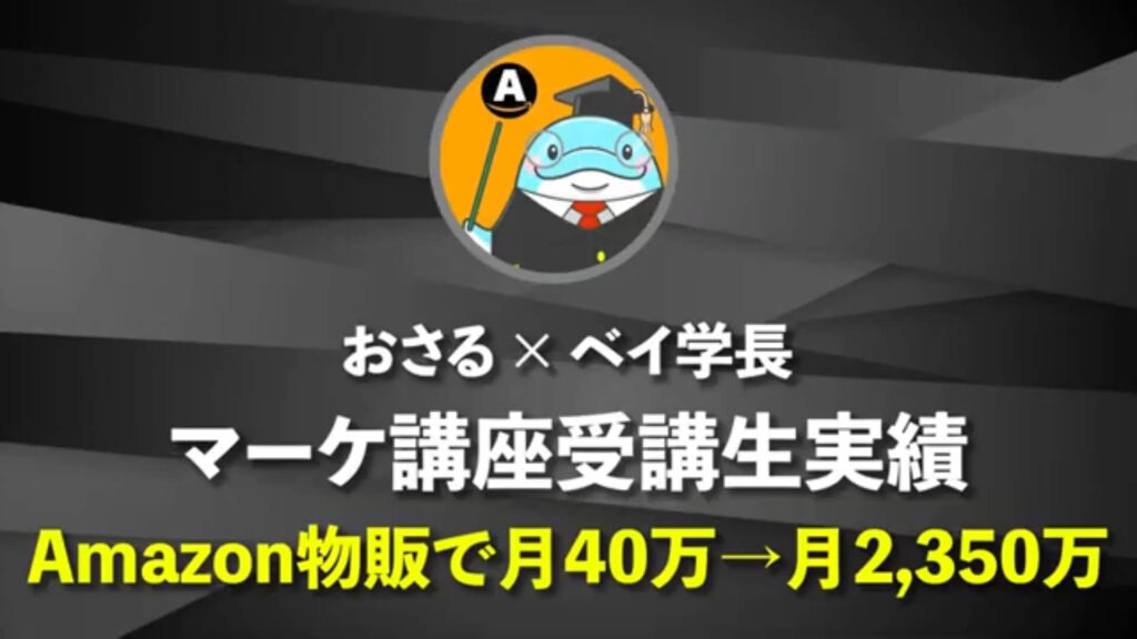 おさる:いや、間違いないですよね。皆さんもこれすごく参考になると思います。物販をまずマネタイトできるようになって、その方法を自分が発信をして、ベイさんみたいに2,350万円と売り上がる。そしたら今度はマーケティングを駆使してマネタイズしたという事実があるので、その部分を教えられると。