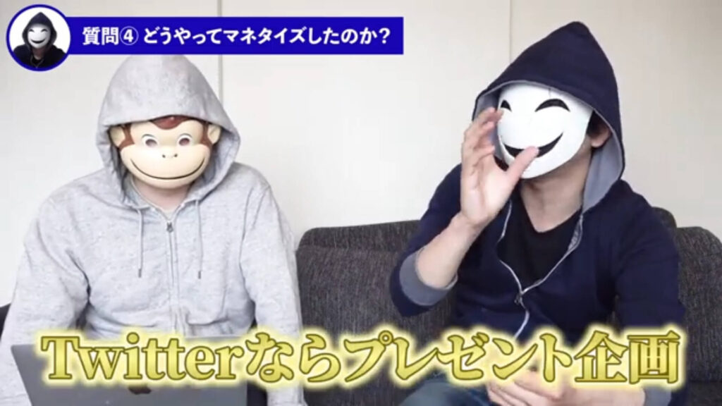 仮メンタリストえる:そうです。僕的には課題があって「じゃあどうしたらいい?」と思ったときにTwitterならプレゼント企画。これは丸々おさるさんを参考にさせてもらったんですけど、すごくいいですよね。