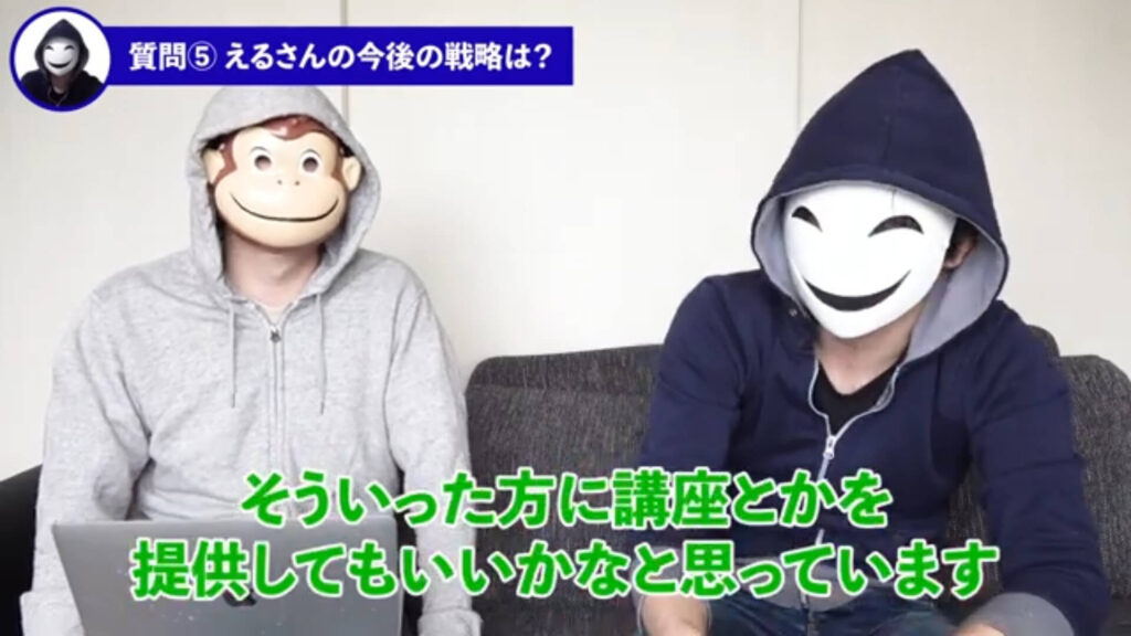 おさる:ということでかなり詳しく聞いてきたんですけども、質問5つ目なんですがこれからのえるさんの戦略としてはいかがでしょうか?