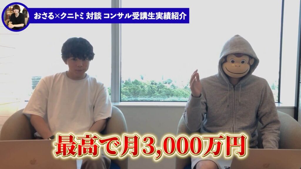 おさる:クニトミさんのすごいところは、まだYouTubeをやられていないんですよね。やっていなくてまだ伸び代がすごいある状態なのに、月3,000万円とか年間で1億円以上の利益を出せるようになったというところなんですね。