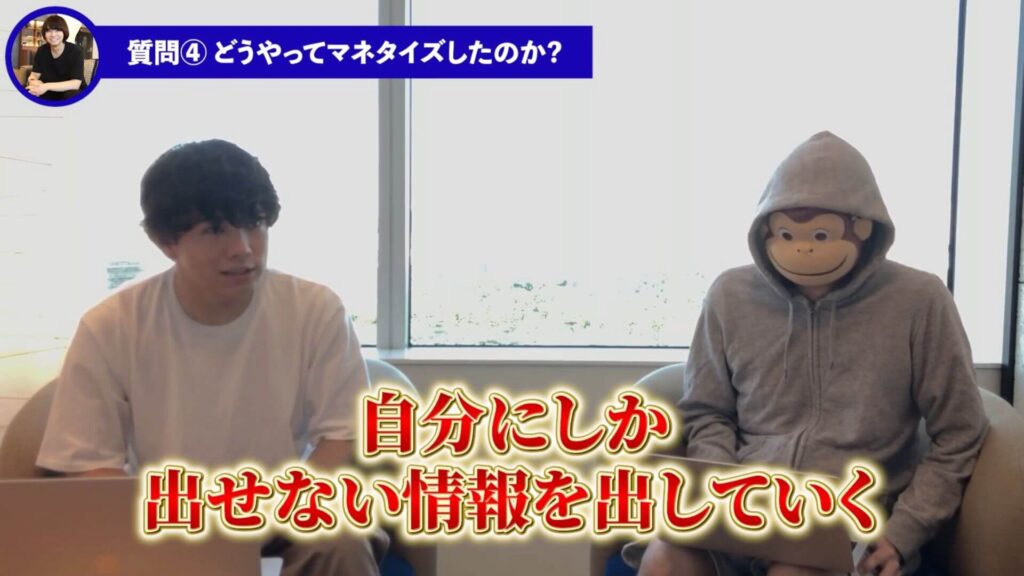 質問4つ目で、実際に具体的にこういったところを教わったということをクニトミさんの口から聞きましたけども、どうやってマネタイズしてきたのかをもっと具体的に聞いてこうかなと思います。販売導線のところとか商品の価格とか、そういうところも教えていただいていいでしょうか。