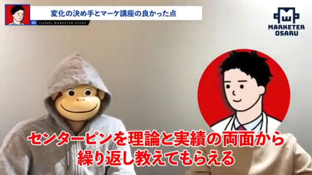 おさる:変化の決め手になったもの僕の講座の何が良かったのかという点についてはいかがでしょうか?