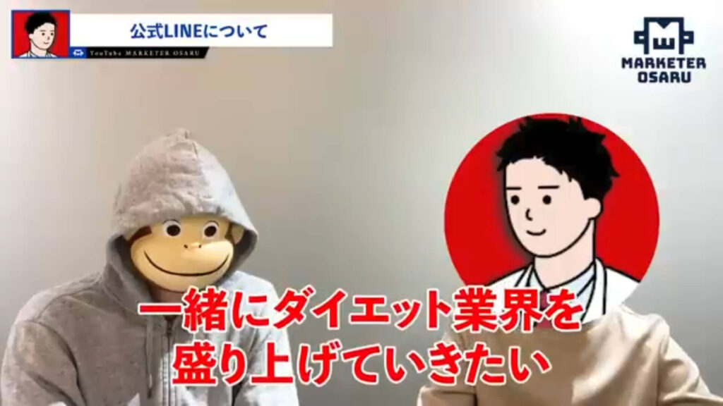 審査制にして人数を絞っているので、この動画を見ている方で興味があるという場合はLINEの登録をしていただくと良いと思います。特にダイエットの方は良いと思います。やはりその専門によってアプローチが少し変わることがあるので、細かい粒度の部分が聞けるのではないかと思います。