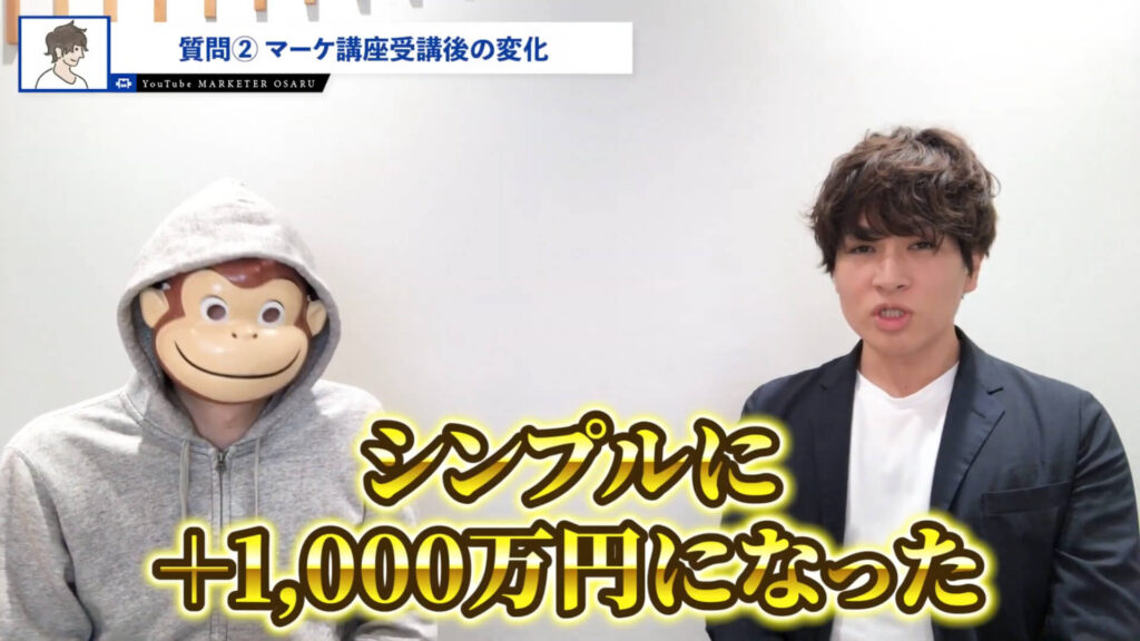 おさる:僕の講座に入って新規プロダクトでプラス1,000万円というね。